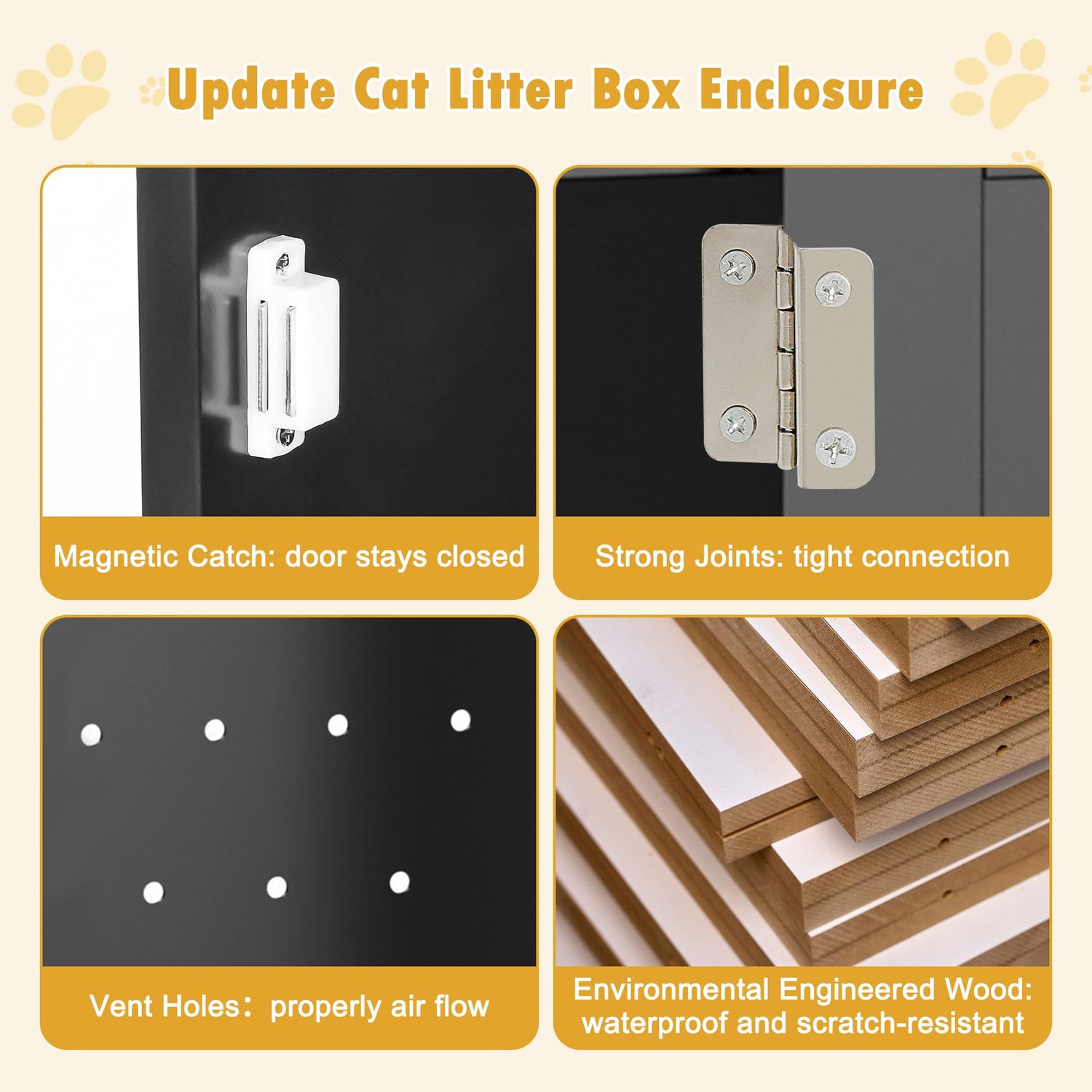 Cat Litter Box Enclosure Hidden Kitty Litter Box Furniture Indoor Cat Box Cabinet House Side Table Nightstand Washroom (Black)