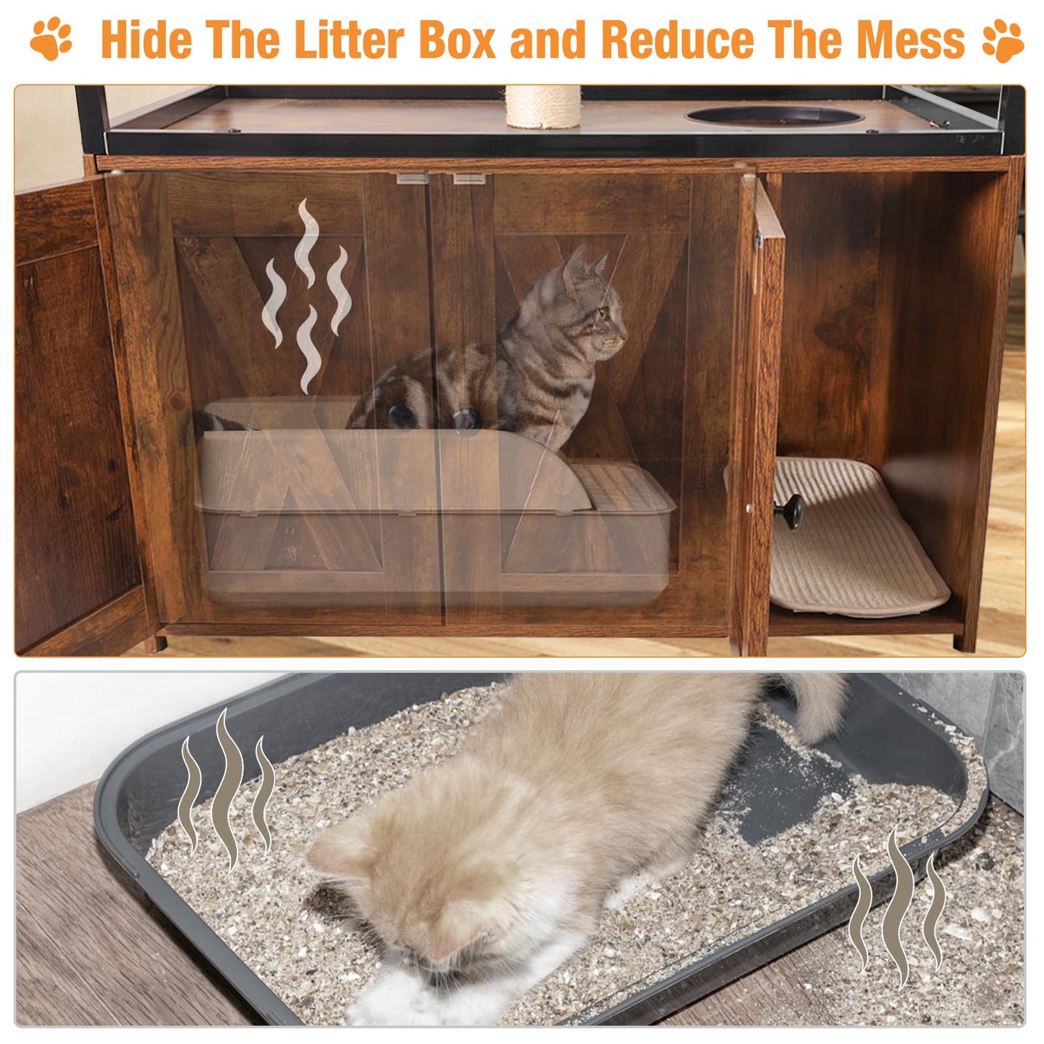 - Sturdy Construction: Made from top-quality P2 particleboard and metal frame, this cat litter box enclosure is sturdy, waterproof, easy to clean and has a long lifespan. Adjustable foot pads on the bottom also keep the cat tower stable while protecting your floor from scratches.