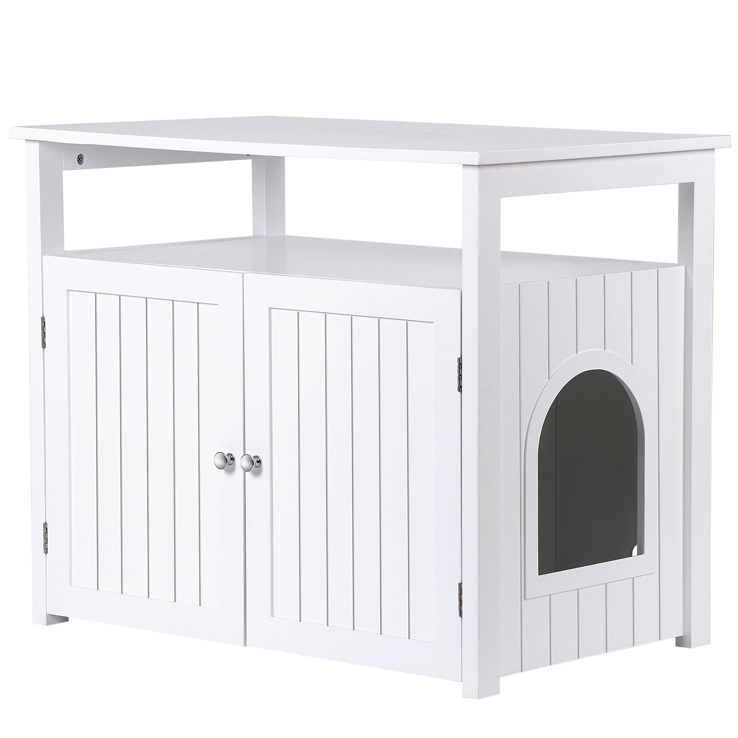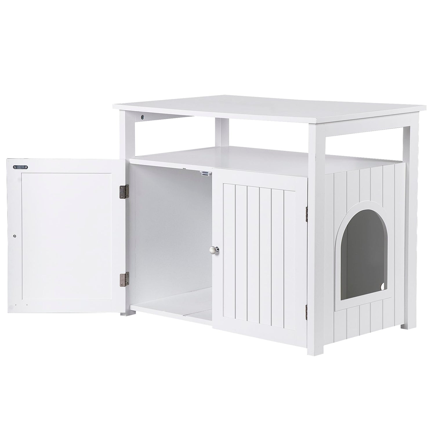 - Multi-functional: The pet furniture serves as nightstand,side table,end table, storage beach, decorative cat litter box enclosure or cat house. With wide table top allows you to place lamp, books, magazines, potted plants, drinking cups etc. In addition, classic white color will perfect matches any other home furniture in your room, especially suitable for the living room, hallway, bathroom, laundry room, etc.