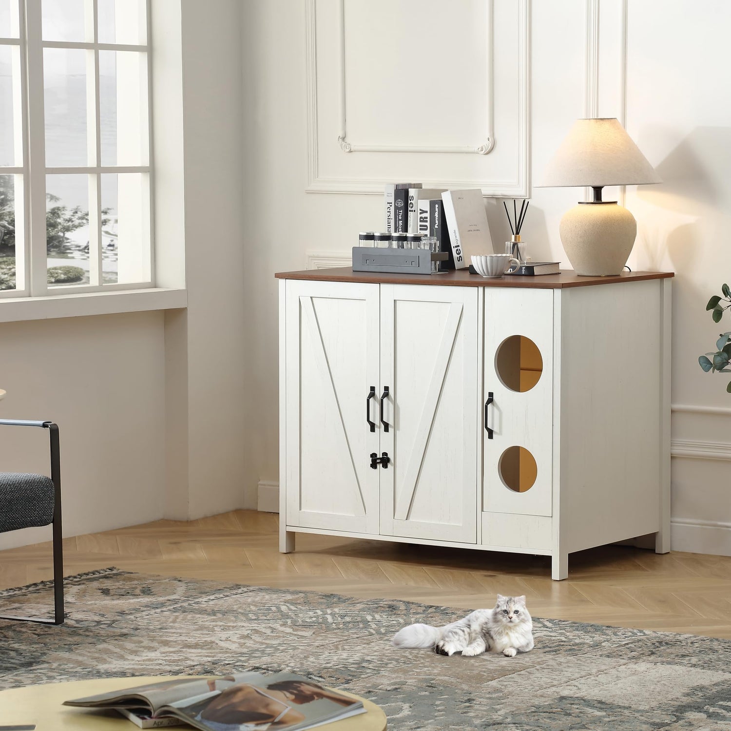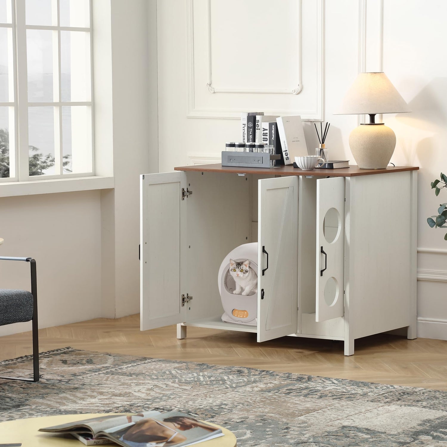 Cat Litter Robot Enclosure, Automatic Litter Box Enclosure for Litter Robot 3/4,Cat-Exclusive entrace for Dog Proof and Fun,Power Outlet for Litter Robot Cabinet,Litter Collector,Antique White