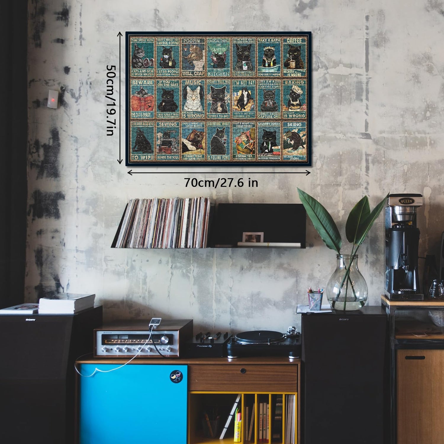 - Whimsical Cat: In these cat jigsaw puzzles 1000 pieces, each poster depicts an anthropomorphic cat and a word, whose expressive eyes and playful gestures reflect each cat's unique personality. The quotes beautifully complement the visual representation of each cat