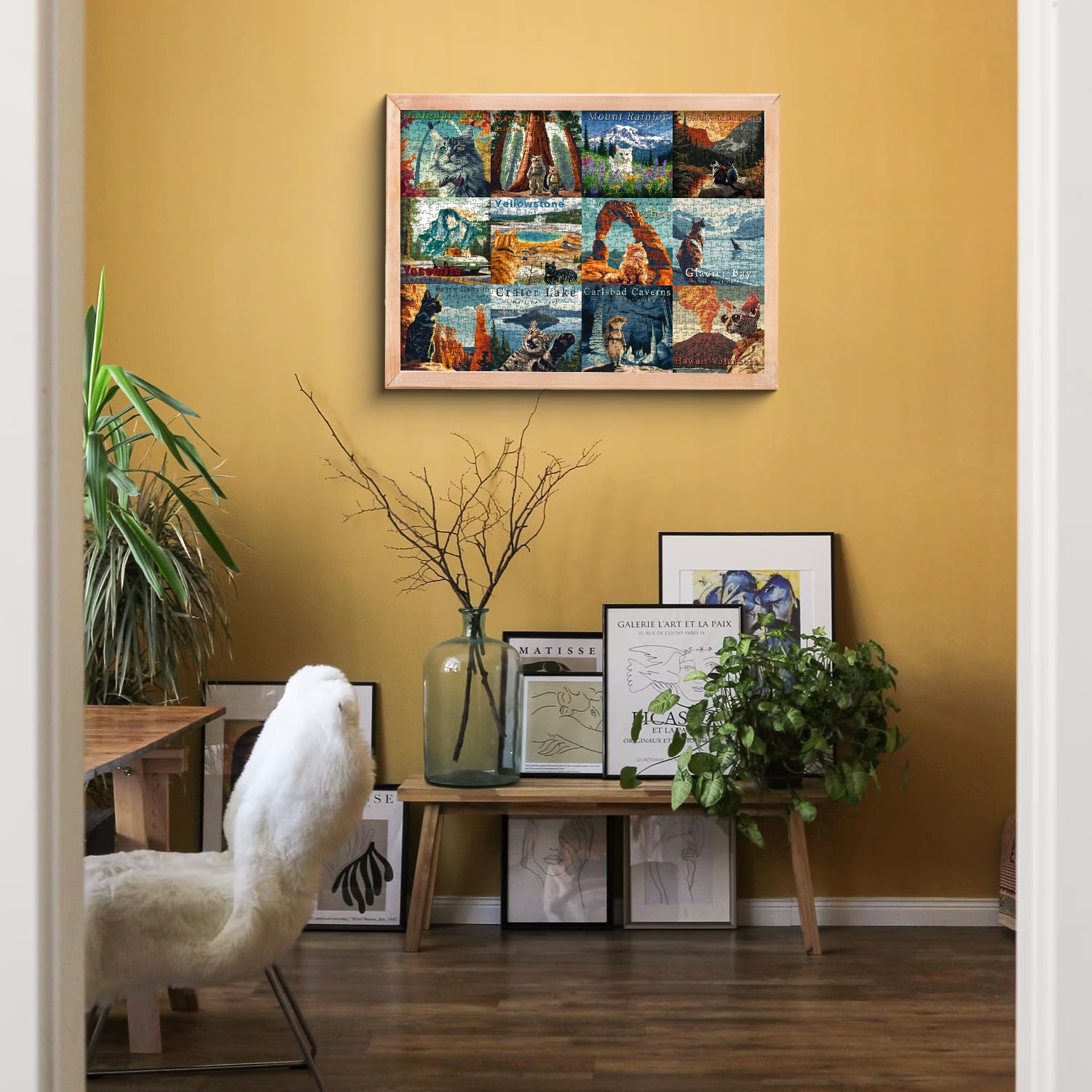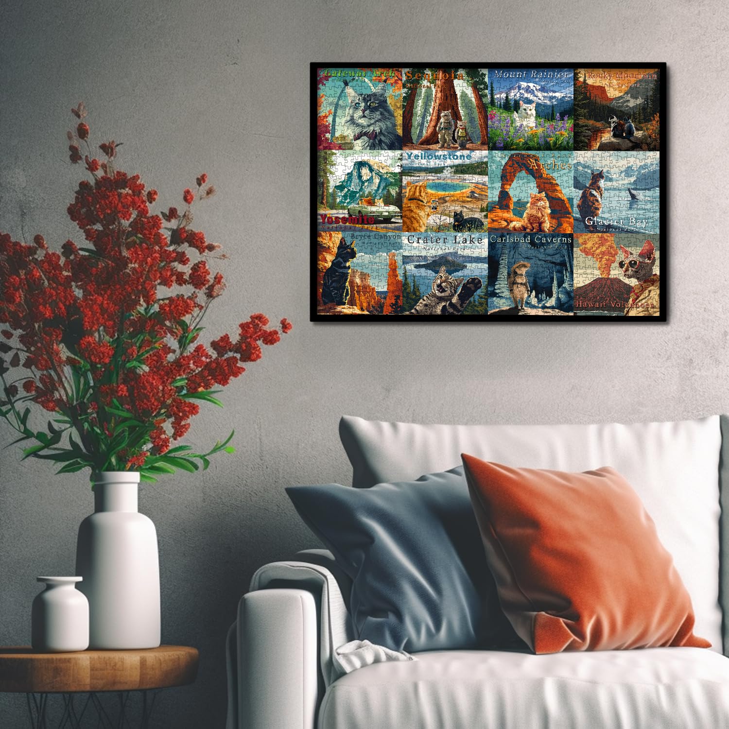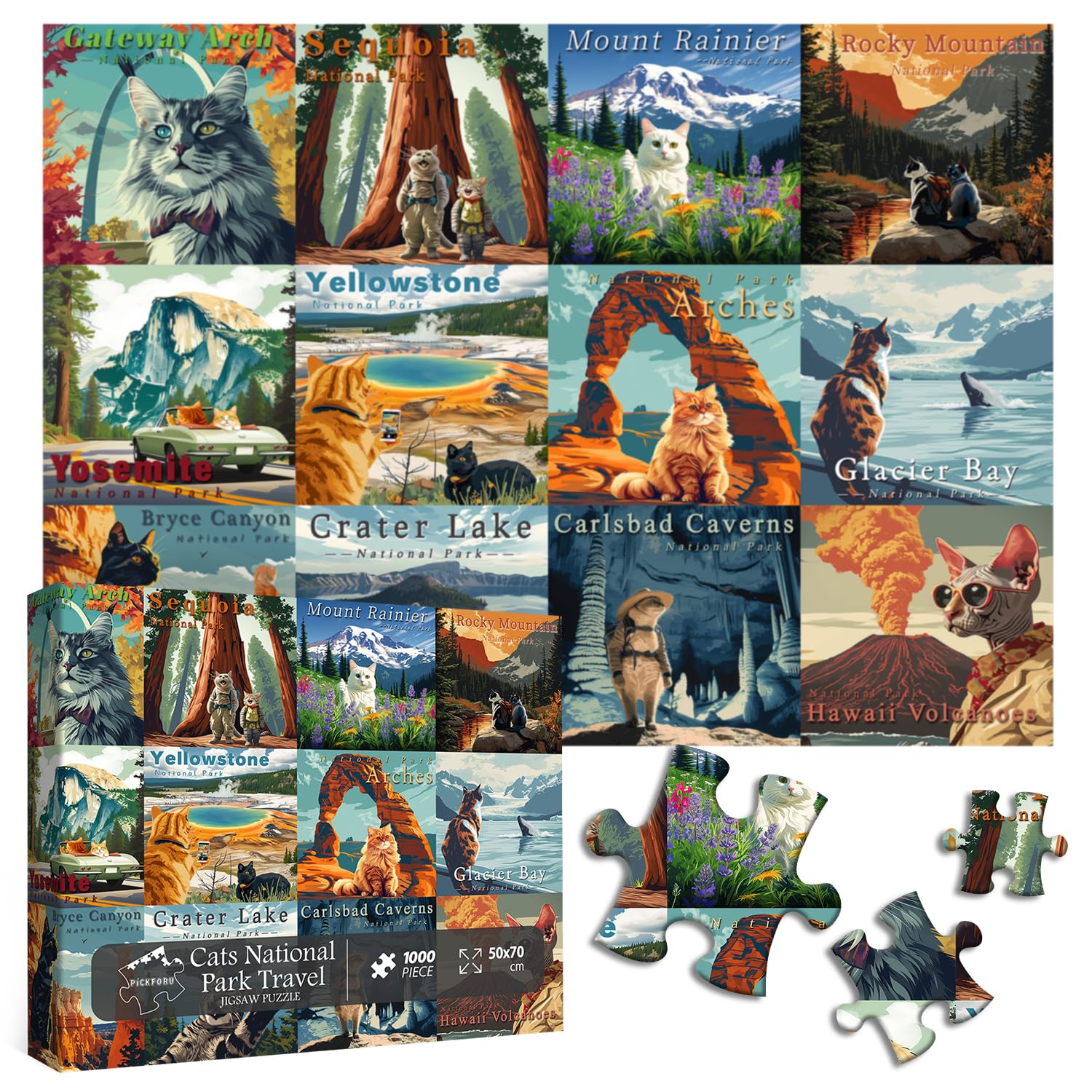 Cat Puzzles for Adults 1000 Pieces and up, National Parks Puzzle Series Kitty Travels Yellowstone Glacier, PICKFORU Funny Cat Jigsaw Puzzles as Home Decor