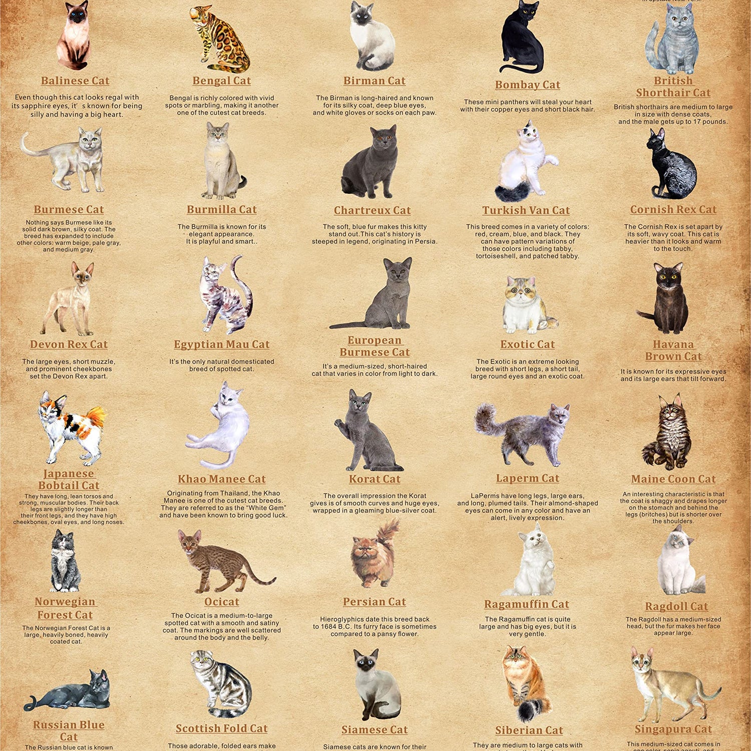 - Cat Collections: This vintage puzzle cats is a collection of cute cat breeds featuring 40 types of cats like siamese cat and ragdoll cat. This cat jigsaw puzzles 1000 pieces shows the charm and uniqueness of different kitten types