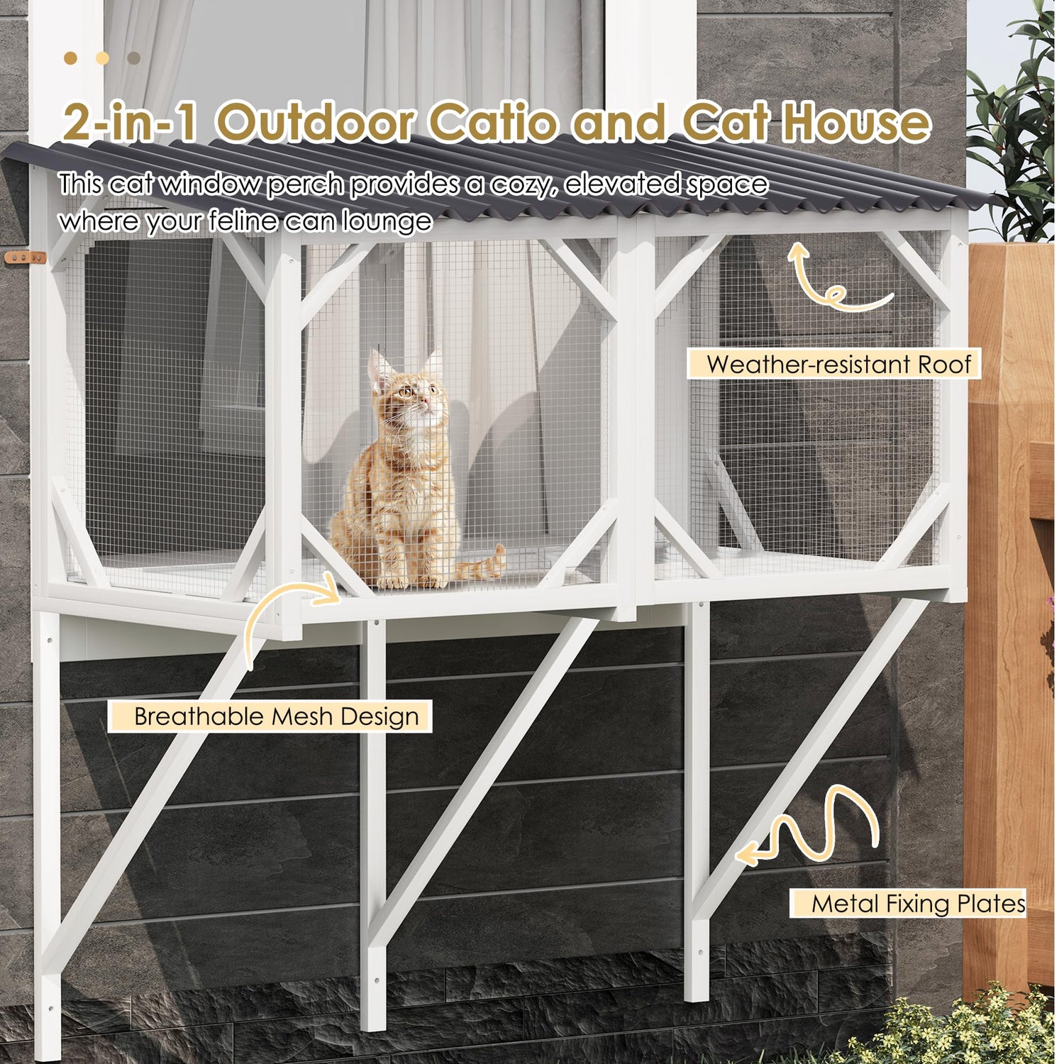 2-in-1 Outdoor Catio and Cat House