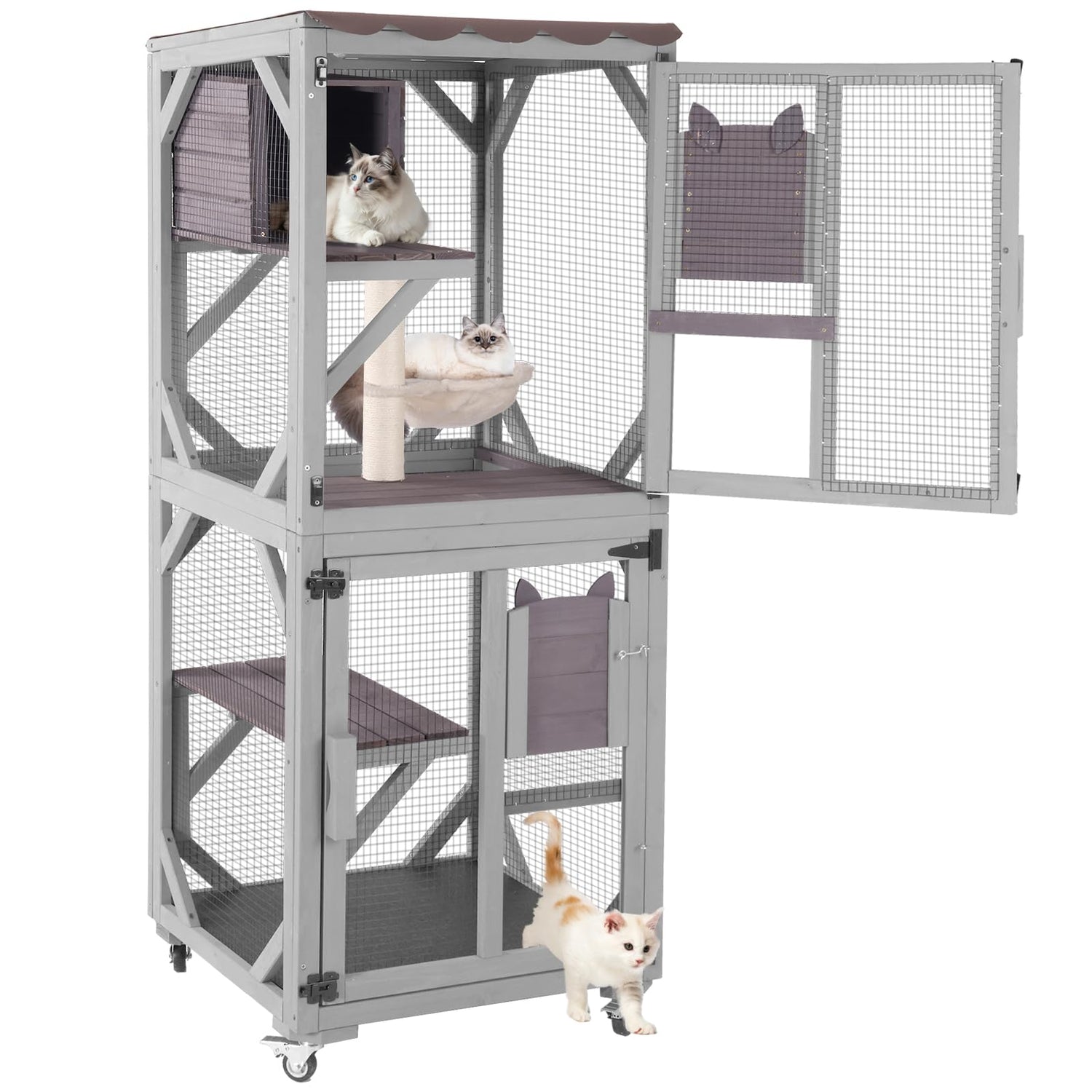 Catio Outdoor Cat Enclosure, 4 Tiers Outdoor Cat House with Wheels, Kitty Cages Indoor Large Window Catio -Waterproof Roof