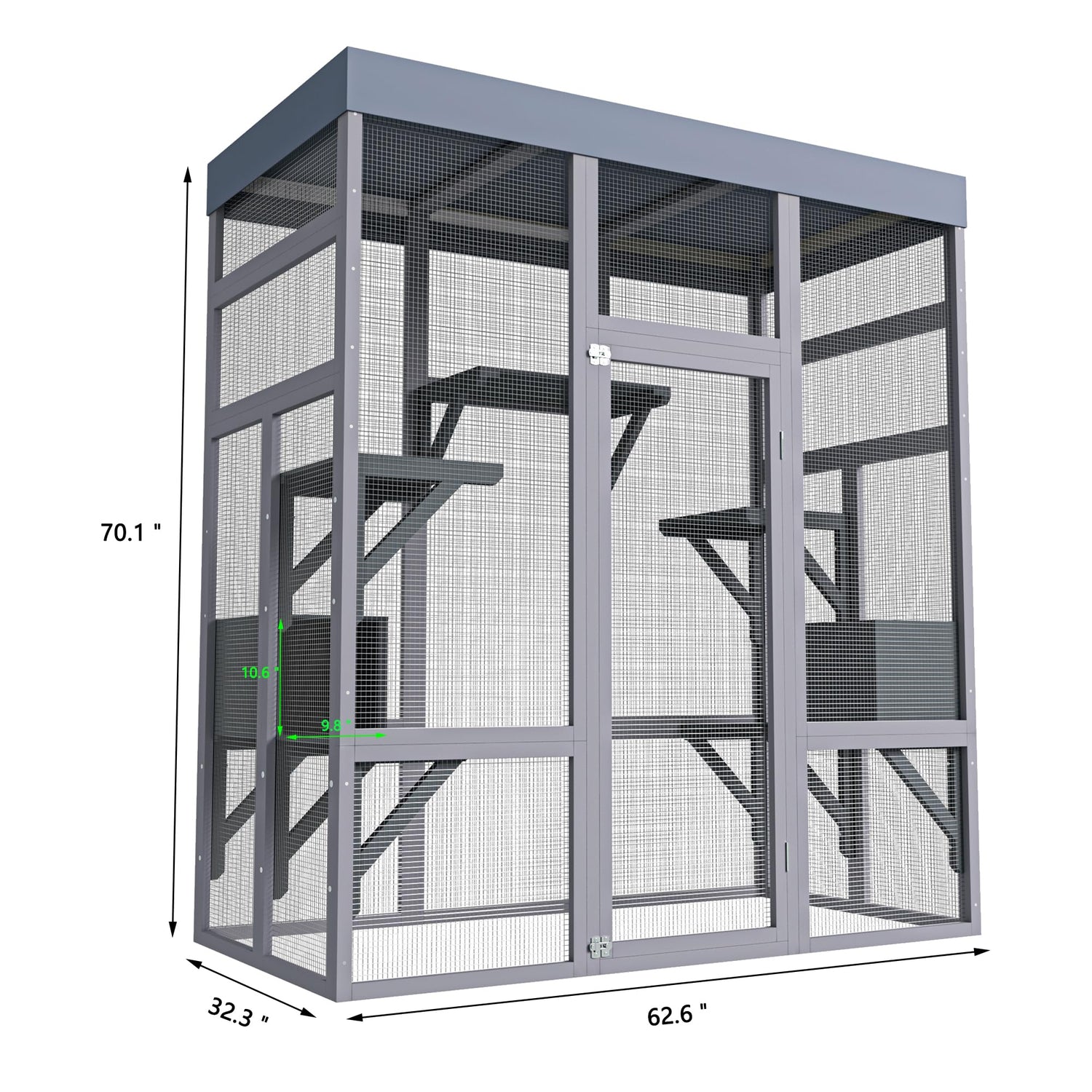 Catio Outdoor Cat Enclosure, 70.1" Large Wood Catio Outdoor Cats Enclosure with Waterproof Roof, 2 Cat Resting Box & Platforms, UV Resistant, Secure Rust-Proof Wire Pet Cage for Patio or Backyard
