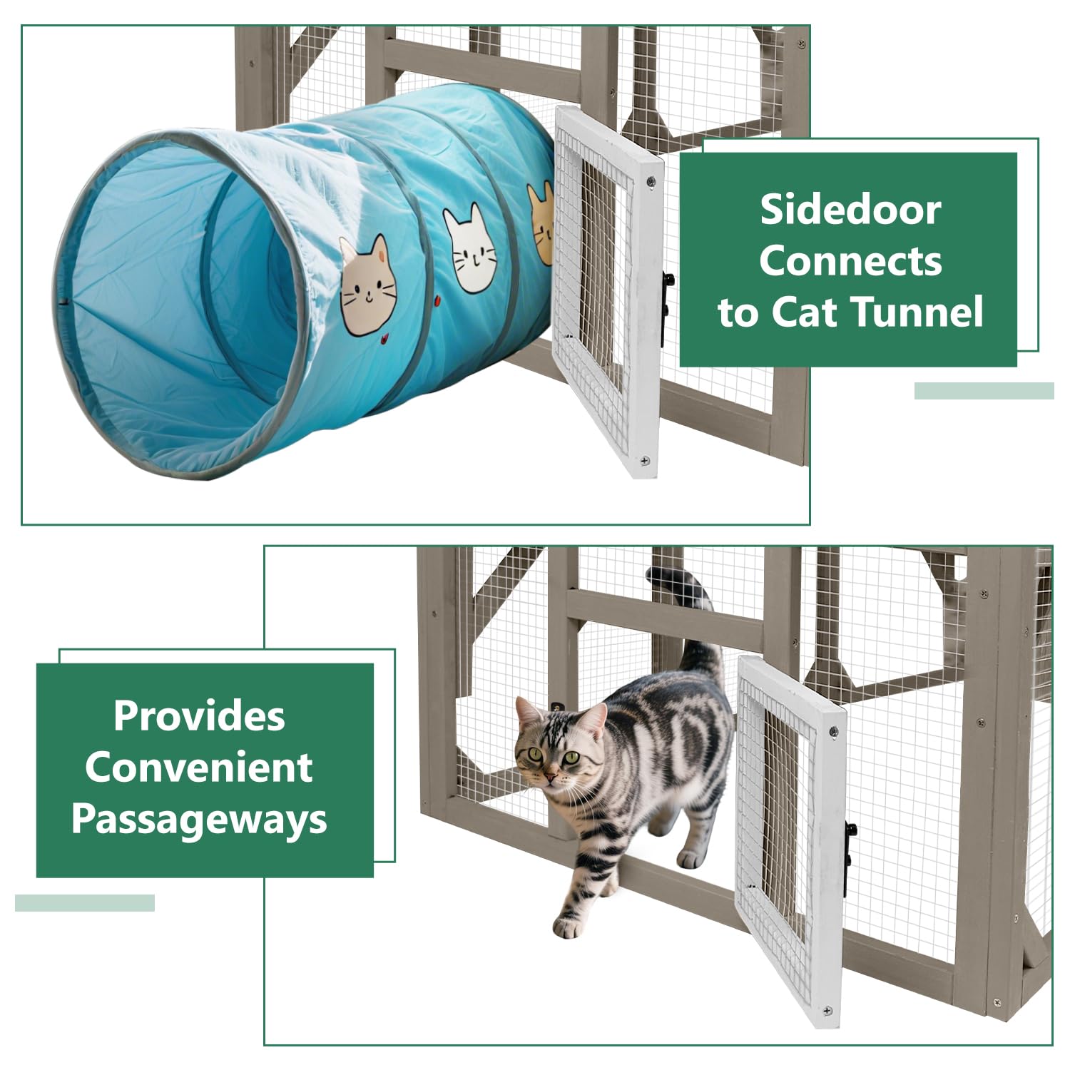 - Cat Window Catio: Easily connect this catio to your home! With 3 access doors, just remove panels to attach it to windows or pet flaps, creating a seamless indoor-outdoor pathway for safe adventures