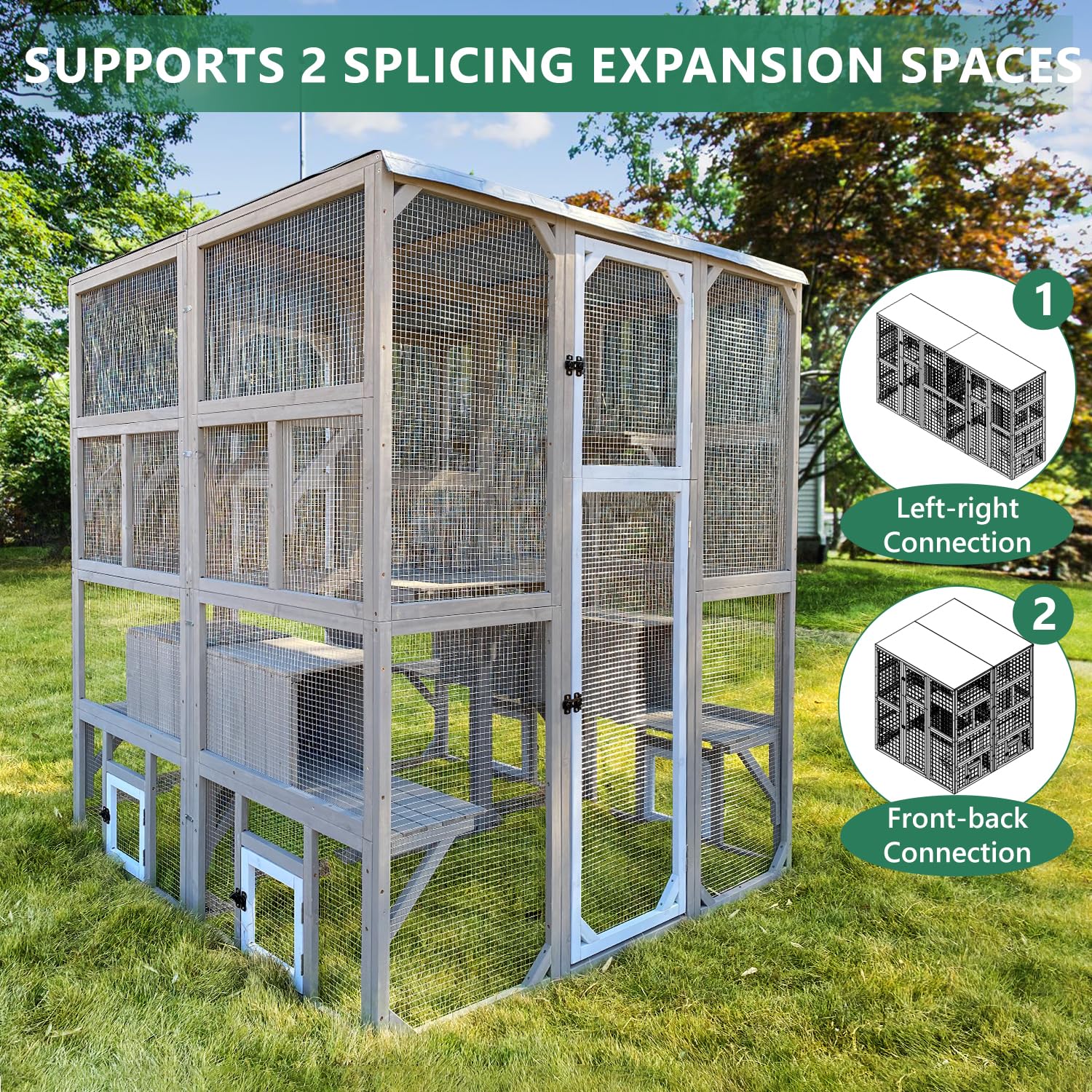 - Walk-In Outdoor Cat Enclosure: No more bending down! The full-height 67.7" front door lets you step right in to play, groom, or bond with your cat—face-to-face and hassle-free