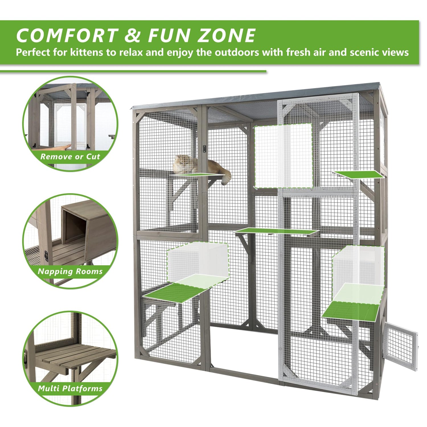 Catio Outdoor Cat Enclosure with Weatherproof Tarp Roof, Large Window, Multi-Platform Walk-in Cat House for Indoor/Outdoor Use