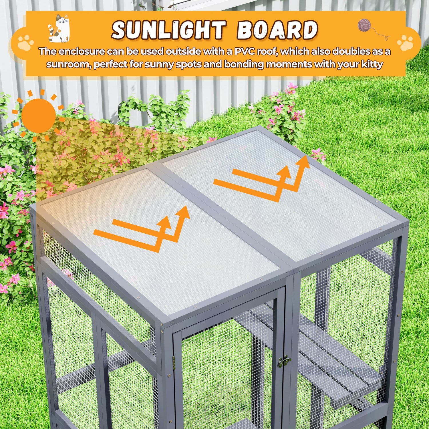 - Weatherproof: Featuring a PVC Protected roof, this catio protects your cat from rain and harsh weather while allowing them to bask in the sun. Ideal for curling up or enjoying warm sunlight, it enhances comfort and adds to the interactive experience.