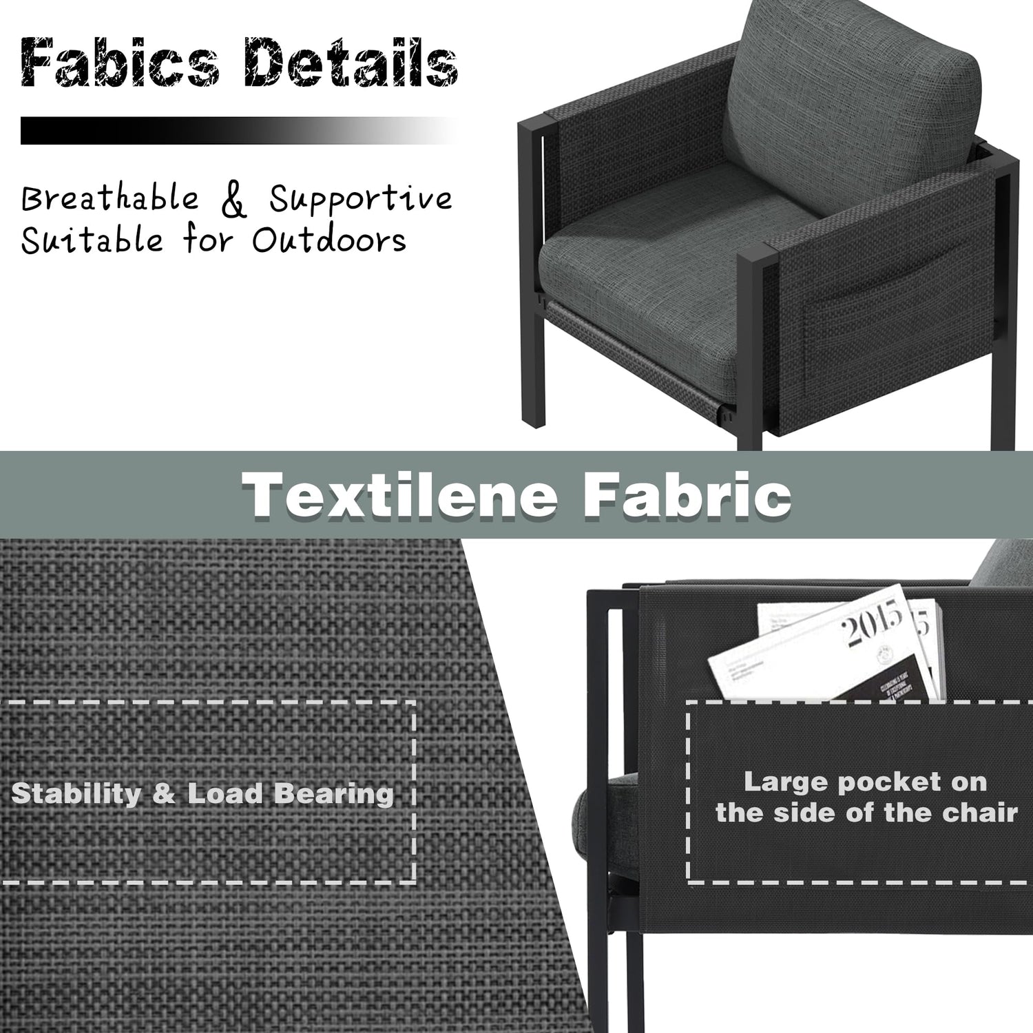- 🌷Sturdy base supported by Textilene: Our Outdoor Patio Furniture Set experience unparalleled stability with a base supported by robust Teslin fabric. Resistant to water, oil, UV rays, and wear and tear, this fabric ensures a strong weight-bearing capacity.