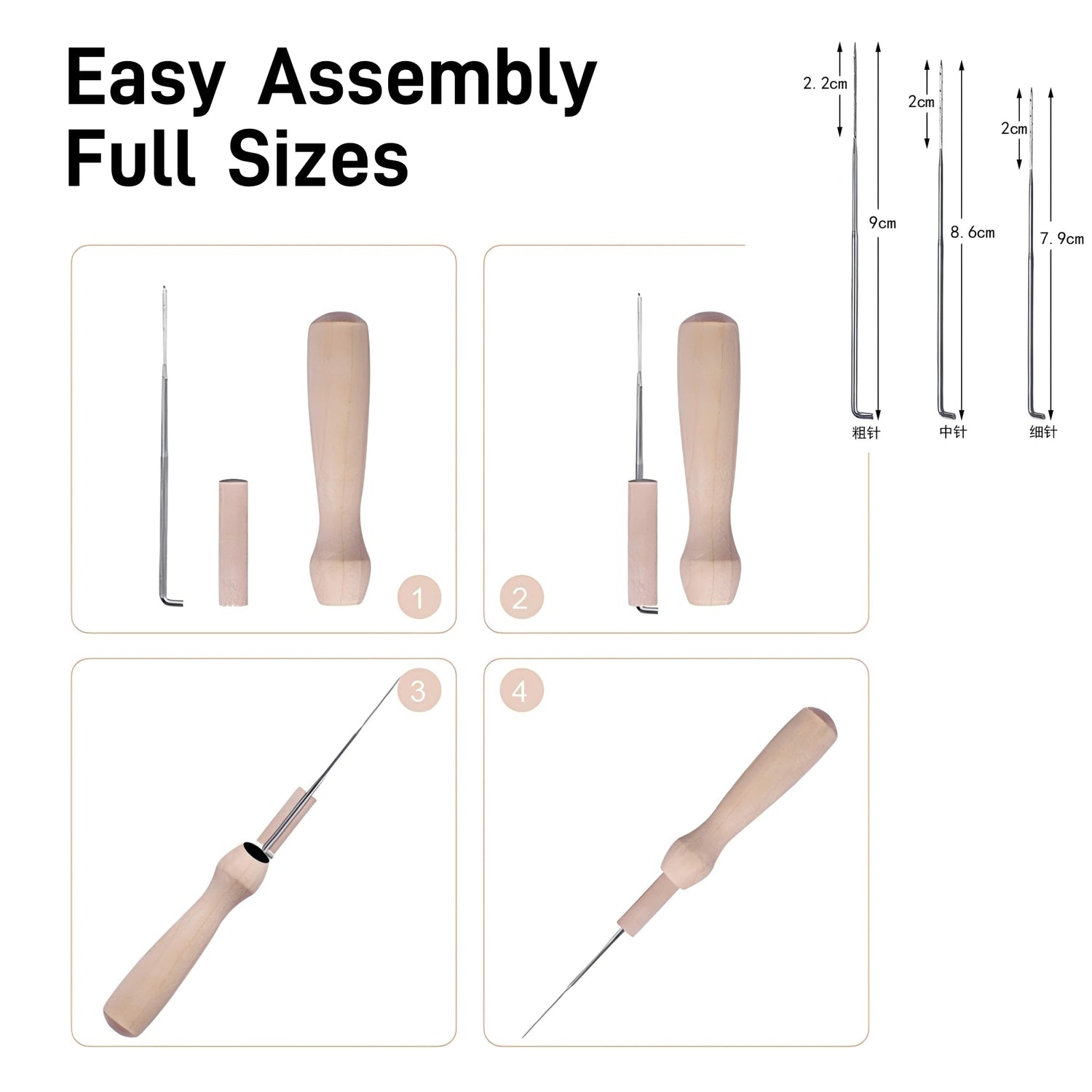 - 【Complete Needle Felting Kit for Endless Creativity】This comprehensive kit includes everything you need to start your felting journey: 20 vibrant wool roving colors, 9 felting needles (3 each in small, medium, and coarse), 8 plastic eyes, 5 plastic noses, 5 durable T-shaped needles, 5 colorful rope chains, 4 versatile wool molds, a wooden handle, finger guards, tweezers, a yarn cutter, a foam pad, a glue bottle, an awl, and a convenient needle bottle. Perfect for beginners and DIY enthusiasts!