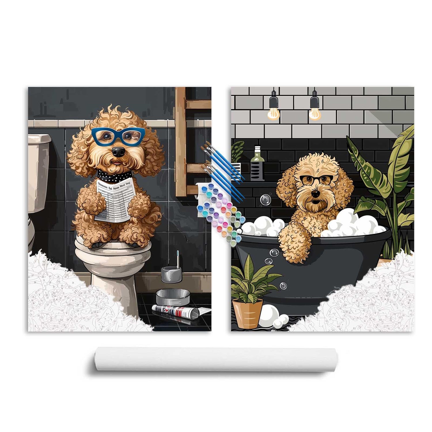 Cawpom Animals Paint by Numbers Kit for Adults, Dogs Paint by Number, Funny Bathroom Acrylic Painting, Animal in Bathroom Wall Art, Home Restroom Toilet Wall Decor(12x16 Inch, 2 Pack Without Frame)