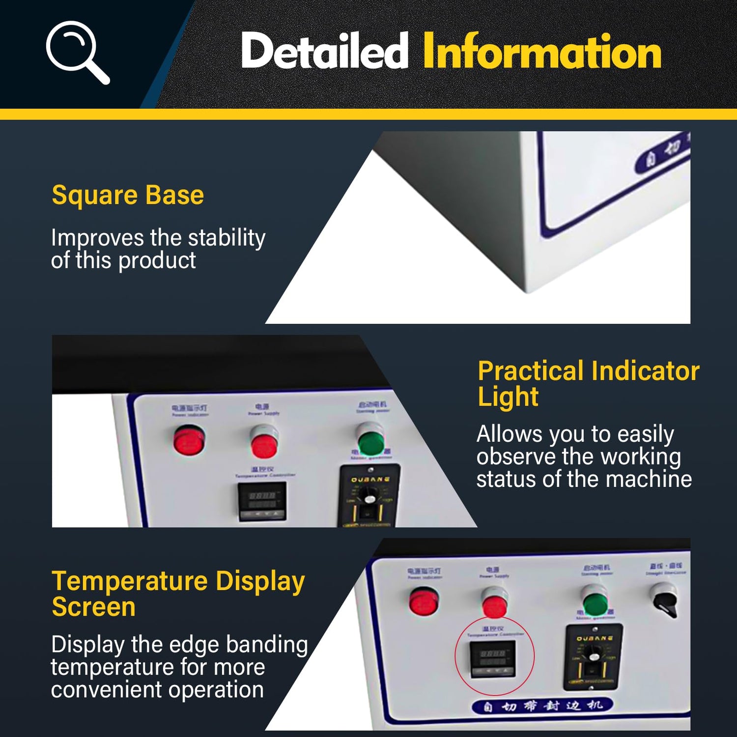 - ▶【Special switch】The edge band is equipped with a micro switch and a self-locking foot switch, which is suitable for cutting linear or curved edge banding materials. Effectively improve work efficiency.