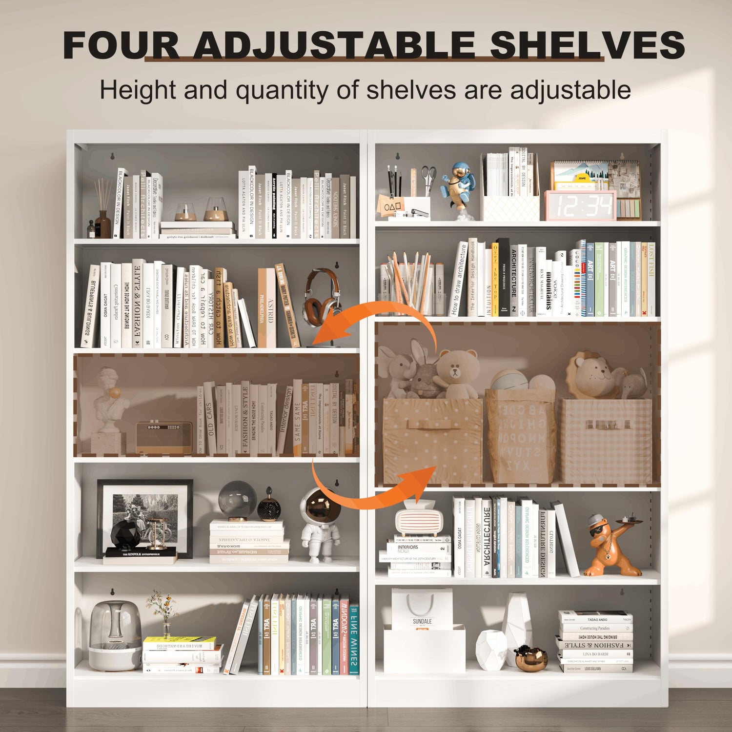 CBNTKI Metal Bookcase and Bookshelf, 66 in Tall Heavy Duty Bookshelf with 4 Adjustable Storage Shelves, Large Deep Bookcase for Home, Library, Office, Bedroom, School, White