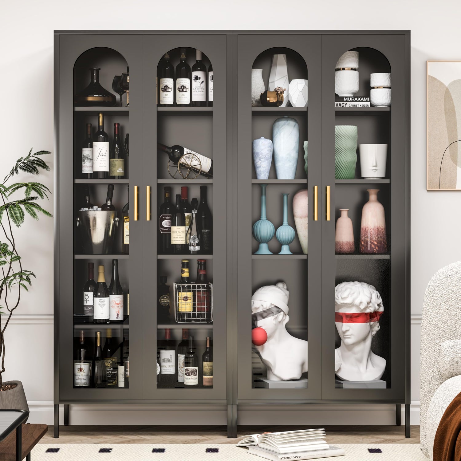 CBNTKI Metal Storage Cabinet,Glass Curio Display Cabinet with 4 Adjustable Shelves,71'' Tall Bookshelf with Glass Doors,Black Cabinet for Home Office, Living Room, Kitchen,Pantry