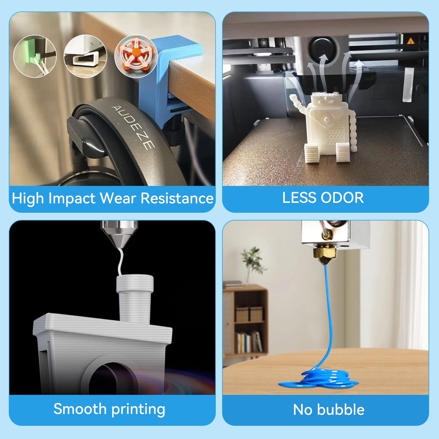 - 【High Strength & Durability】ABS filament offers excellent mechanical properties, ideal for functional parts, tools, and prototypes requiring impact resistance and toughness.