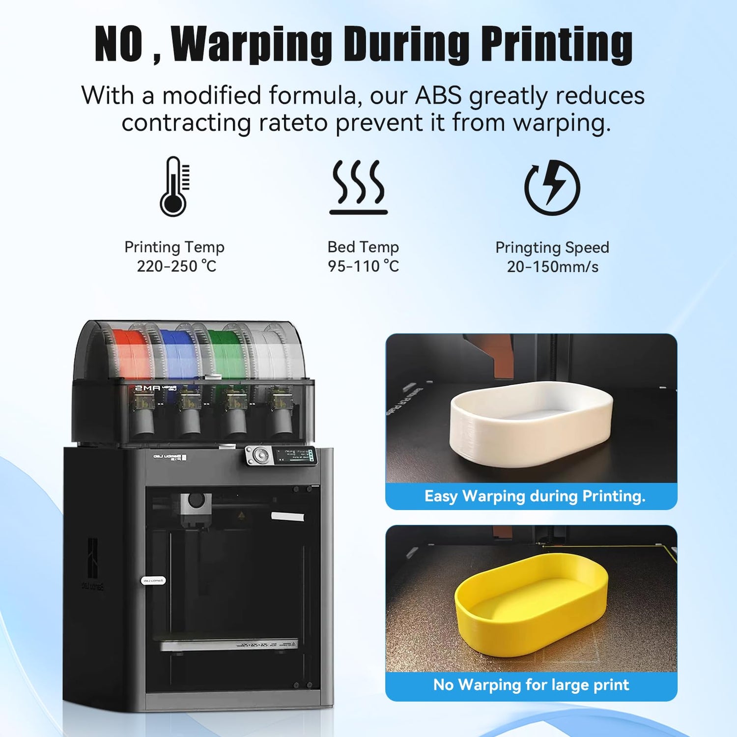 - 【Vacuumed Sealed Packaging】It delivers excellent printing quality with minimal odor and low warpage during printing. Complete drying for 24 hours before vacuum packaging. ABS Filament Compatible with Most of Enclosed FDM 3D Printers