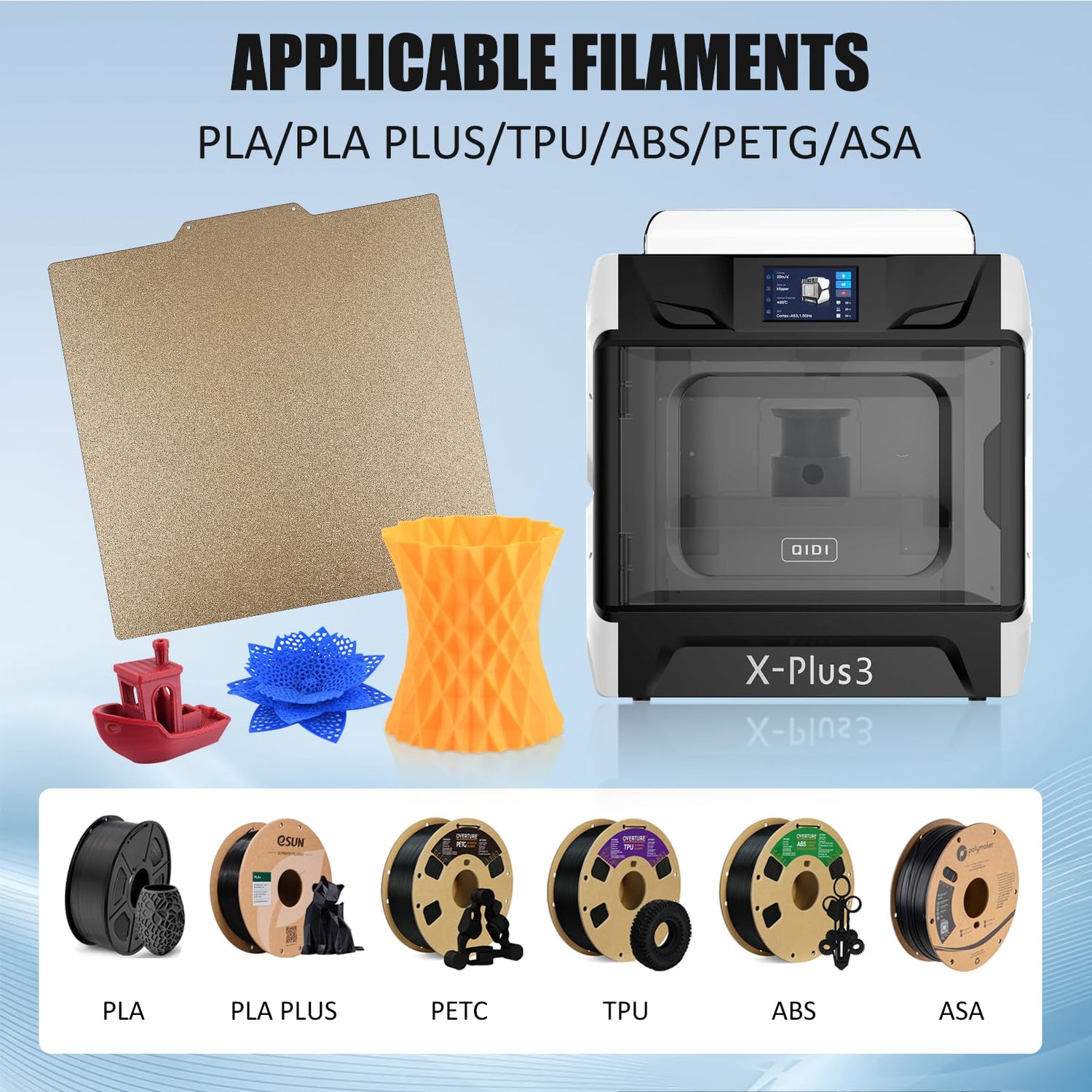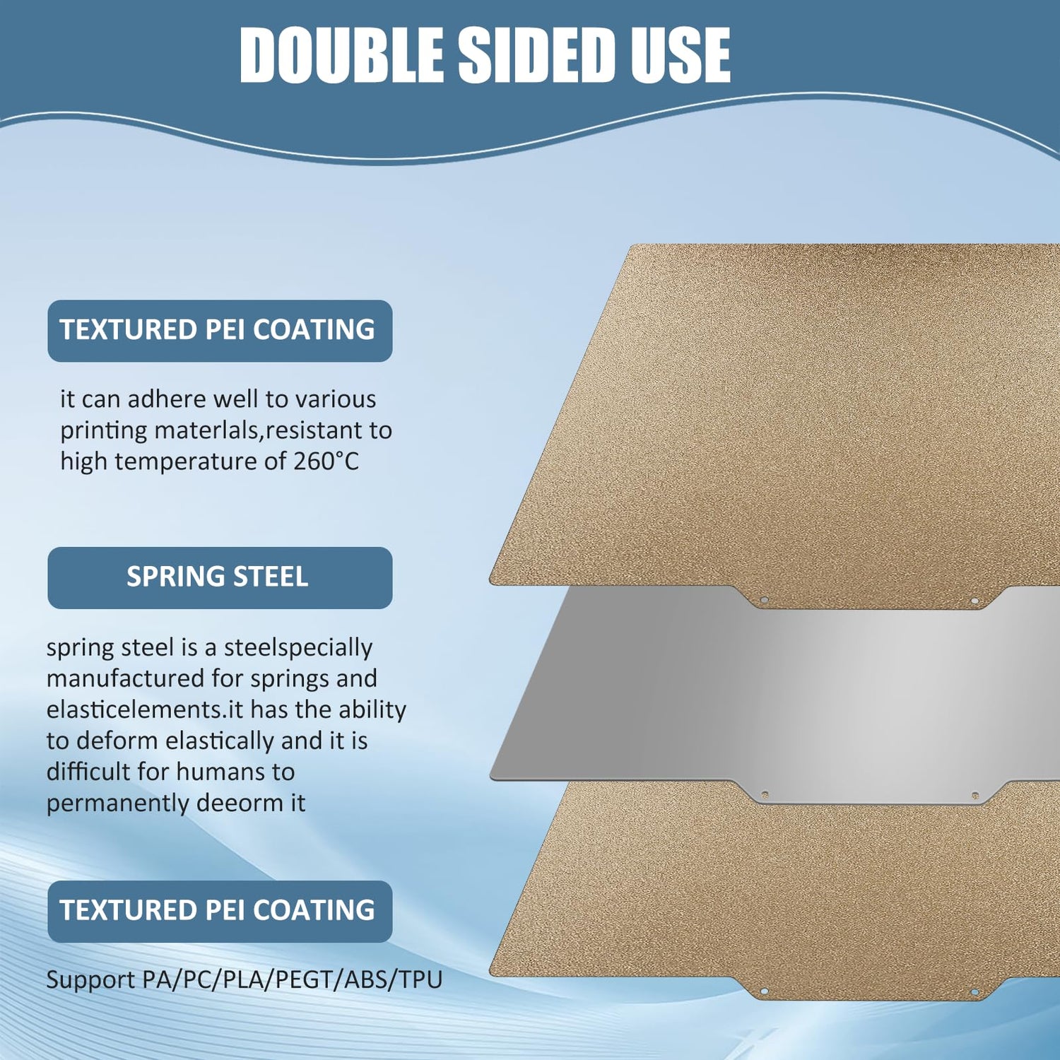 - 【 Double-Sided Textured PEI Plate】This is a Double Sided Textured PEI plate for QIDI X-PLUS3 printers that presents different textures, and double-sided printing and is cost-effective. size:280*280CM. Compatible with Crealty Ender 7 and QIDI X-PLUS3 3d printers