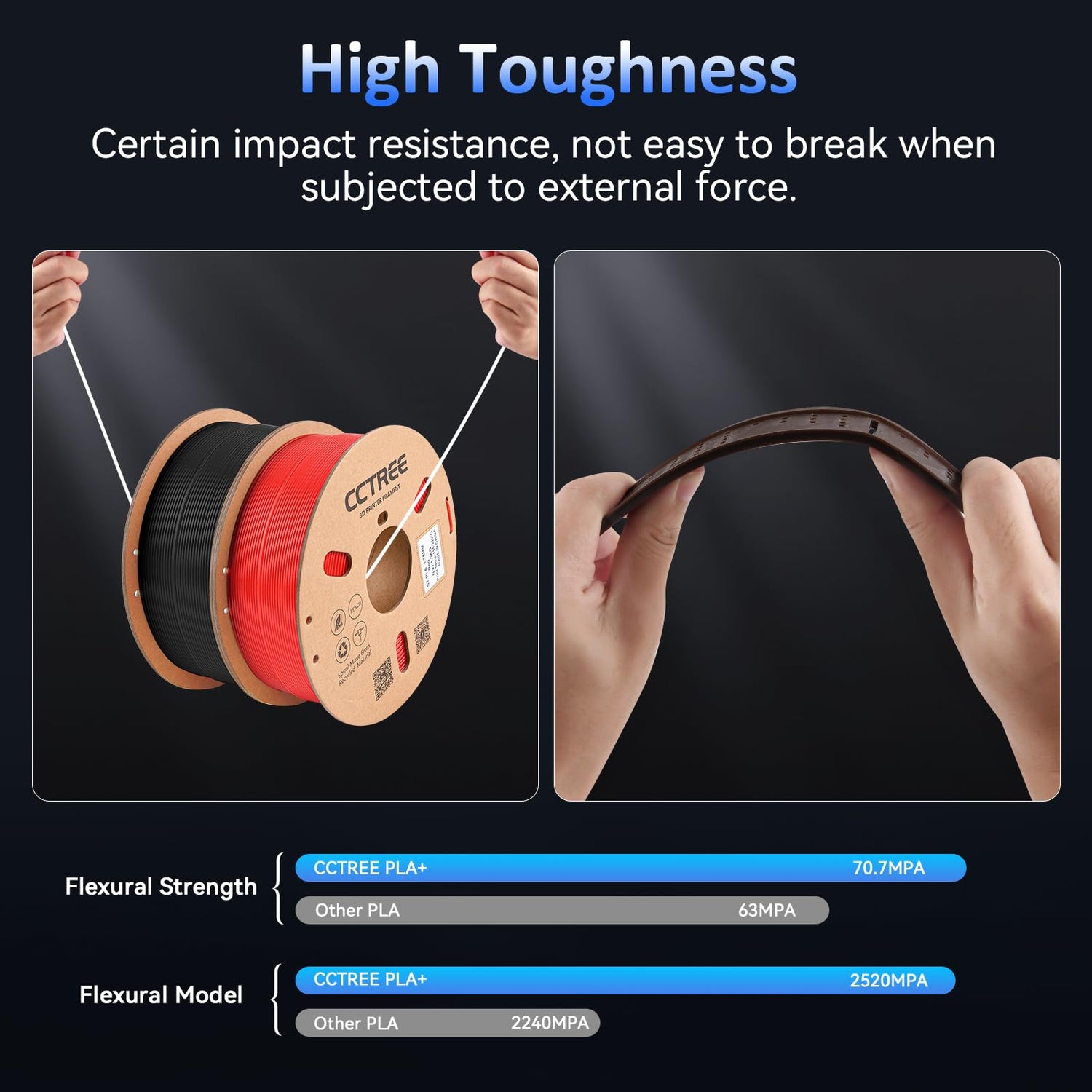 2) Several times tougher than regularl PLA resulting in improved strength and impact resistance