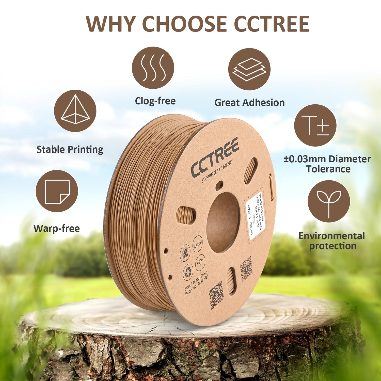 CCTREE Wood PLA Filament 1.75mm, 3D Printer PLA Plus(PLA+) with Real Wood Fiber Wood Texture Filament, Dimensional Accuracy +/- 0.02mm, 1kg Spool(2.2lbs), Fit Most FDM 3D Printers, Wood Teak