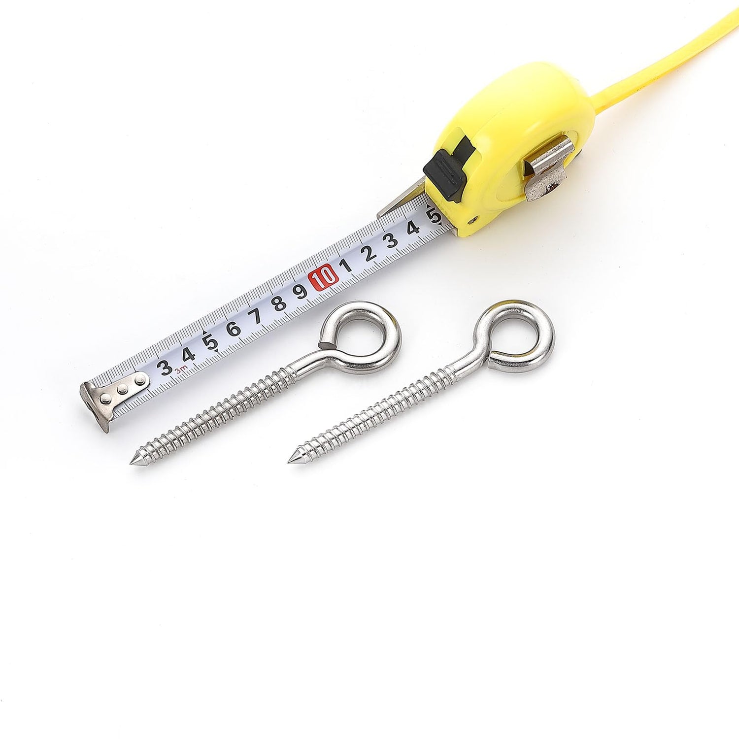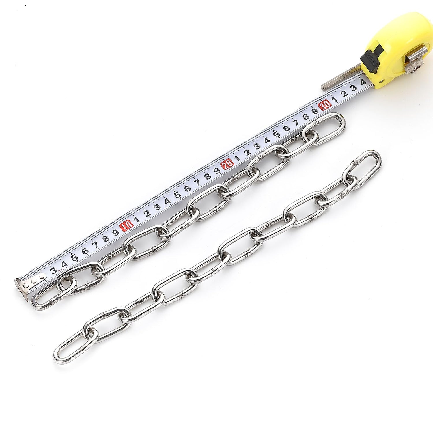 - The kit includes: 2 x 33cm 304 stainless steel chains, 2 x 11.5cm screw Eyes, 4 x 7cm carabiners