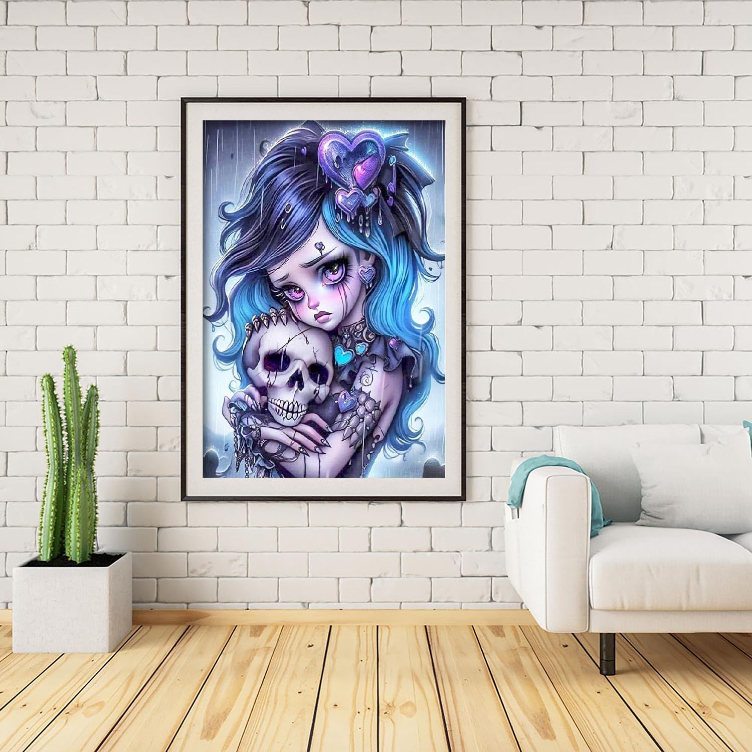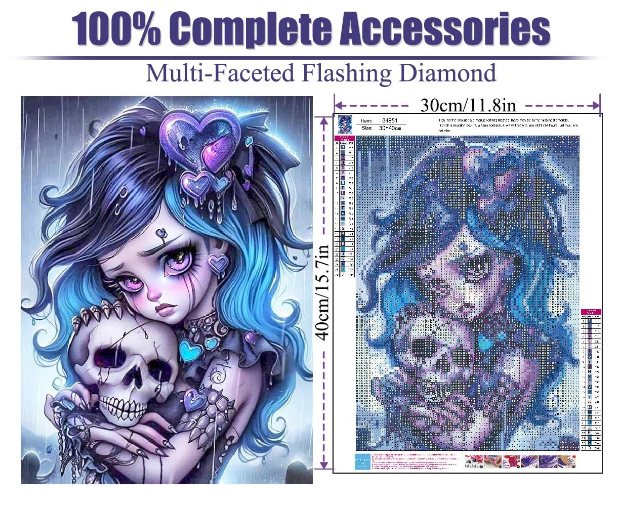 cdjlddww 5D Diamond Painting Kits for Adults, Gothic Diamond Art Kits for Beginners, DIY Skull Round Full Diamond Gemstone Art Rhinestone Painting for Wall Decor 12X16 inch