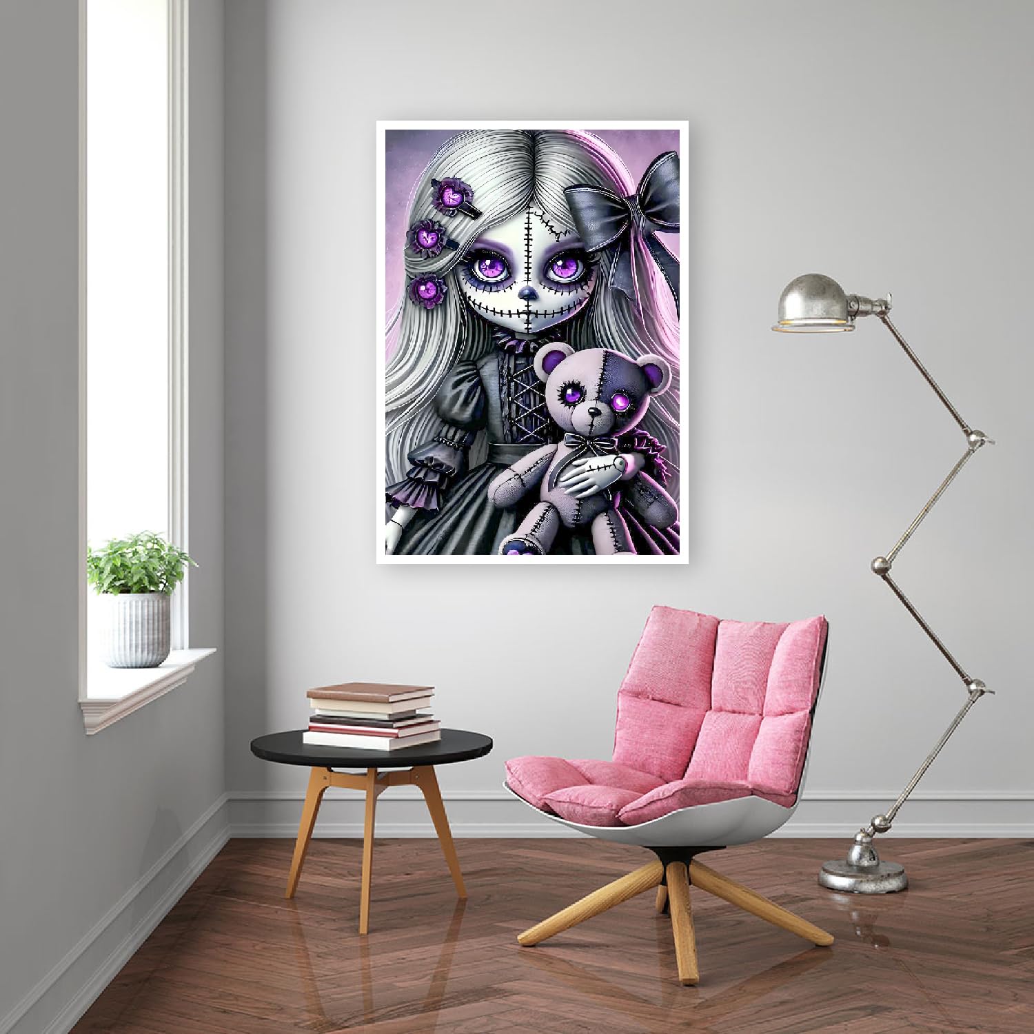 cdjlddww Gothic Diamond Painting Kits for Adults, 5D Diamond Art Kits for Beginners, DIY Bear Round Full Diamond Gemstone Art Rhinestone Painting for Wall Decor 12X16 inch