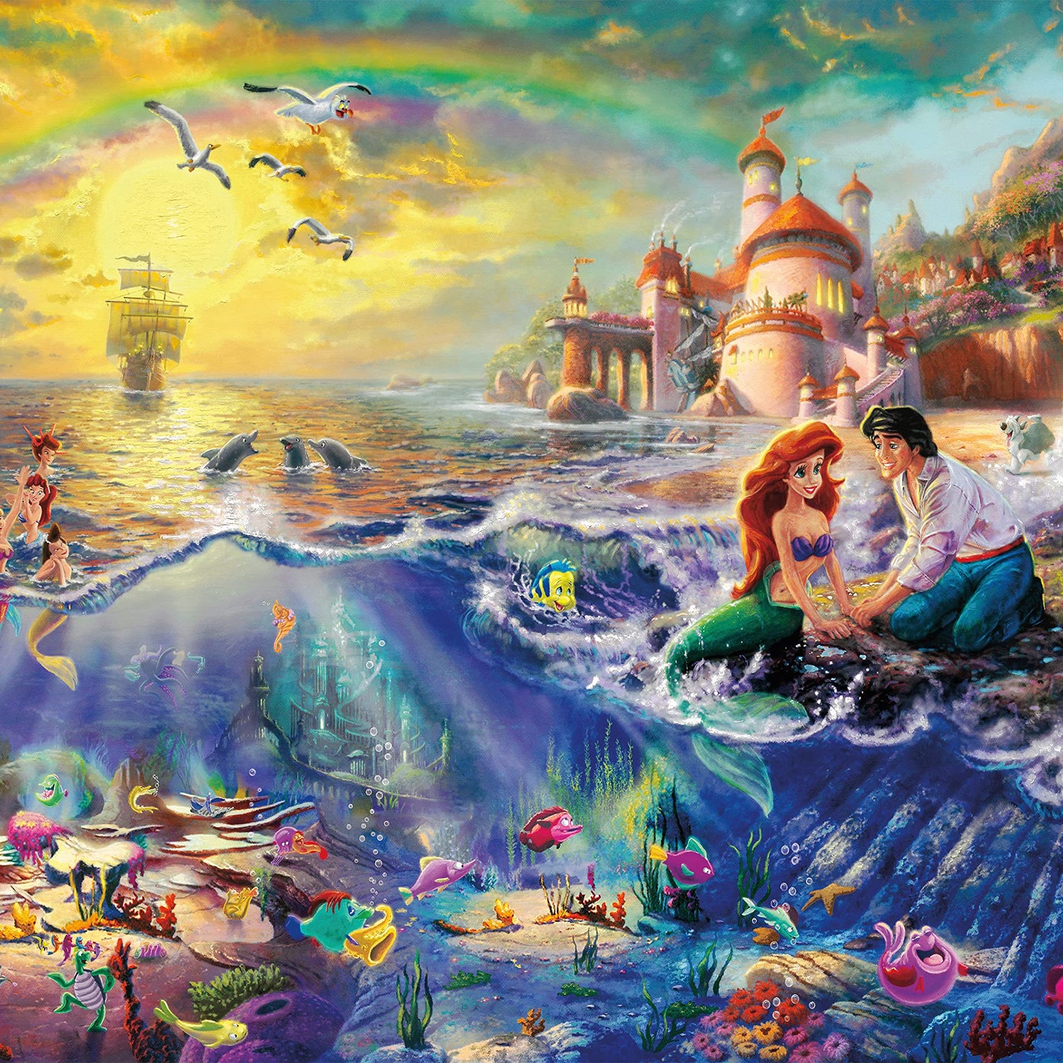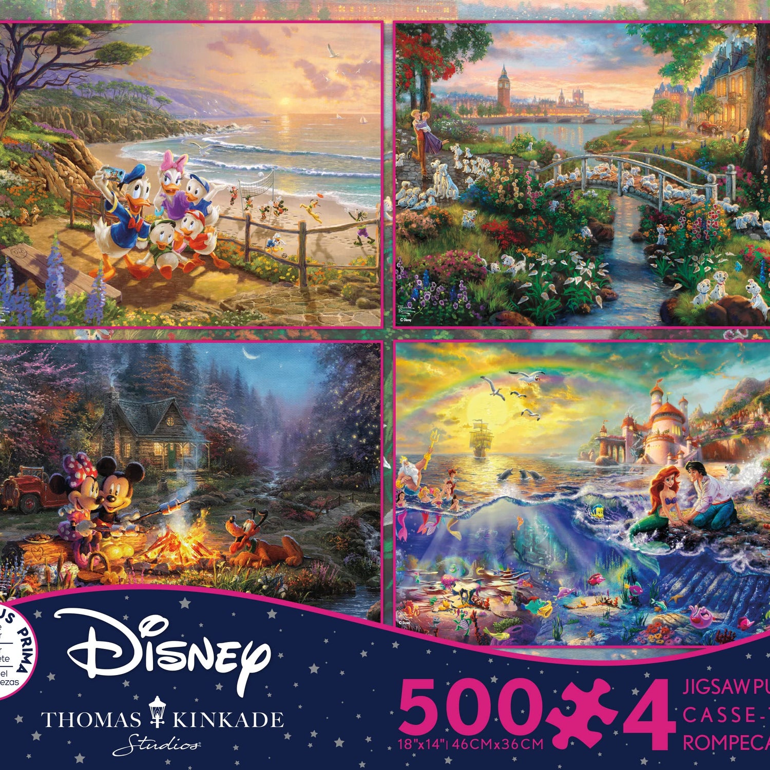 Ceaco - 4 in 1 Multipack - Thomas Kinkade - Disney Dreams Collection - Donald & Daisy Duck, 101 Dalmatians, Mickey, Minnie, & Pluto, & The Little Mermaid - (4) 500 Piece Jigsaw Puzzles