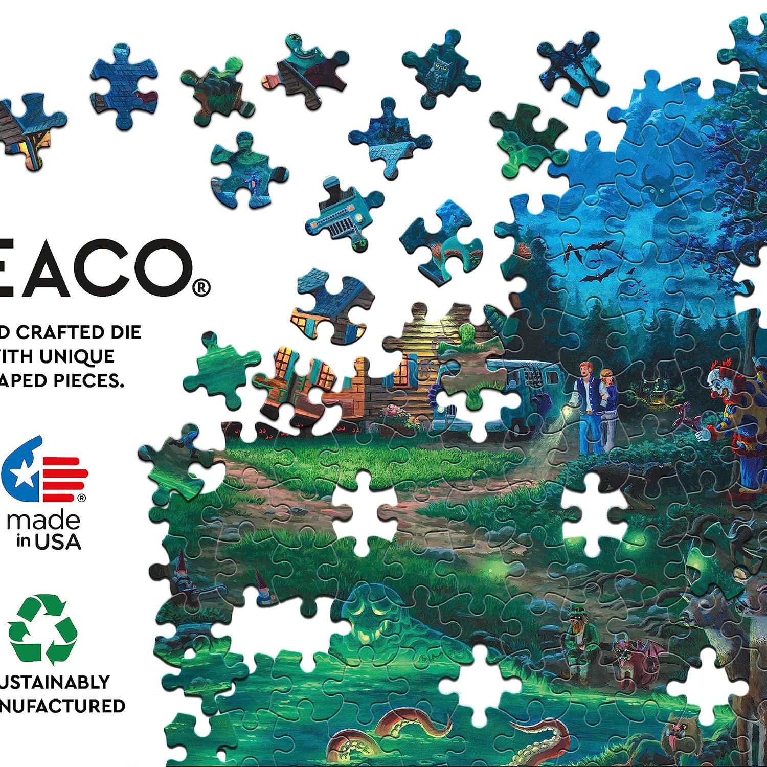 Details: Welcome to Ceaco! We are so grateful that you have found your “fit” here. Since our start in 1987 we have remained true to our mission: to create high quality, innovative and challenging jigsaw puzzles and to provide hours of family fun. We pride ourselves on developing and maintaining long standing relationships with some of the finest artists of our time. Our talented team of designers and marketing professionals are always searching the world over for developing trends, emerging artwork, and new technologies involving printing, die cutting, and unique puzzle materials. Our purpose is clear: to continue to be in the forefront of our industry and create a product that combines family entertainment with a distinctive aesthetic. Count on Ceaco for the most creative, exciting, and colorful products ever! Thanks and happy puzzling!
