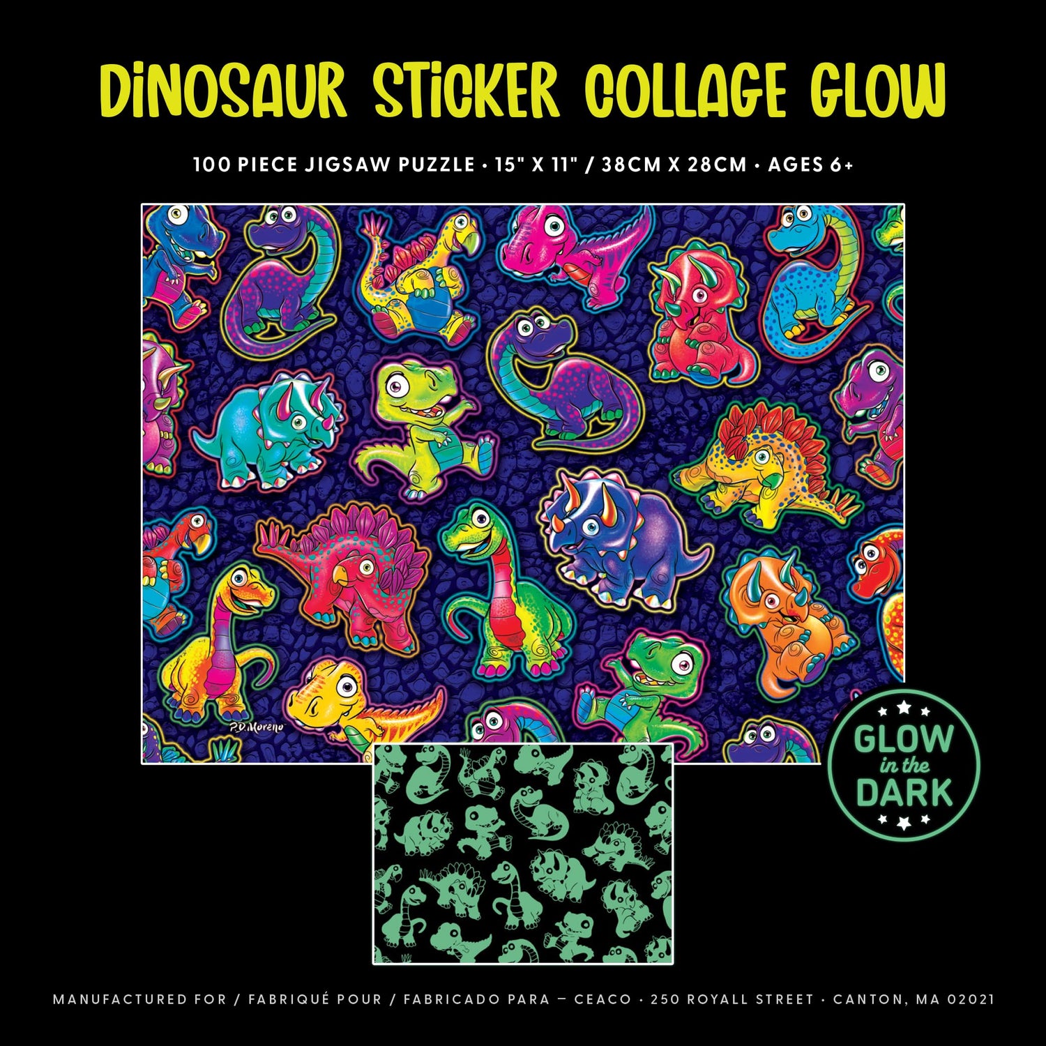 Ceaco - Glow in The Dark - Dinosaur Sticker Collage - 100 Piece Jigsaw Puzzle