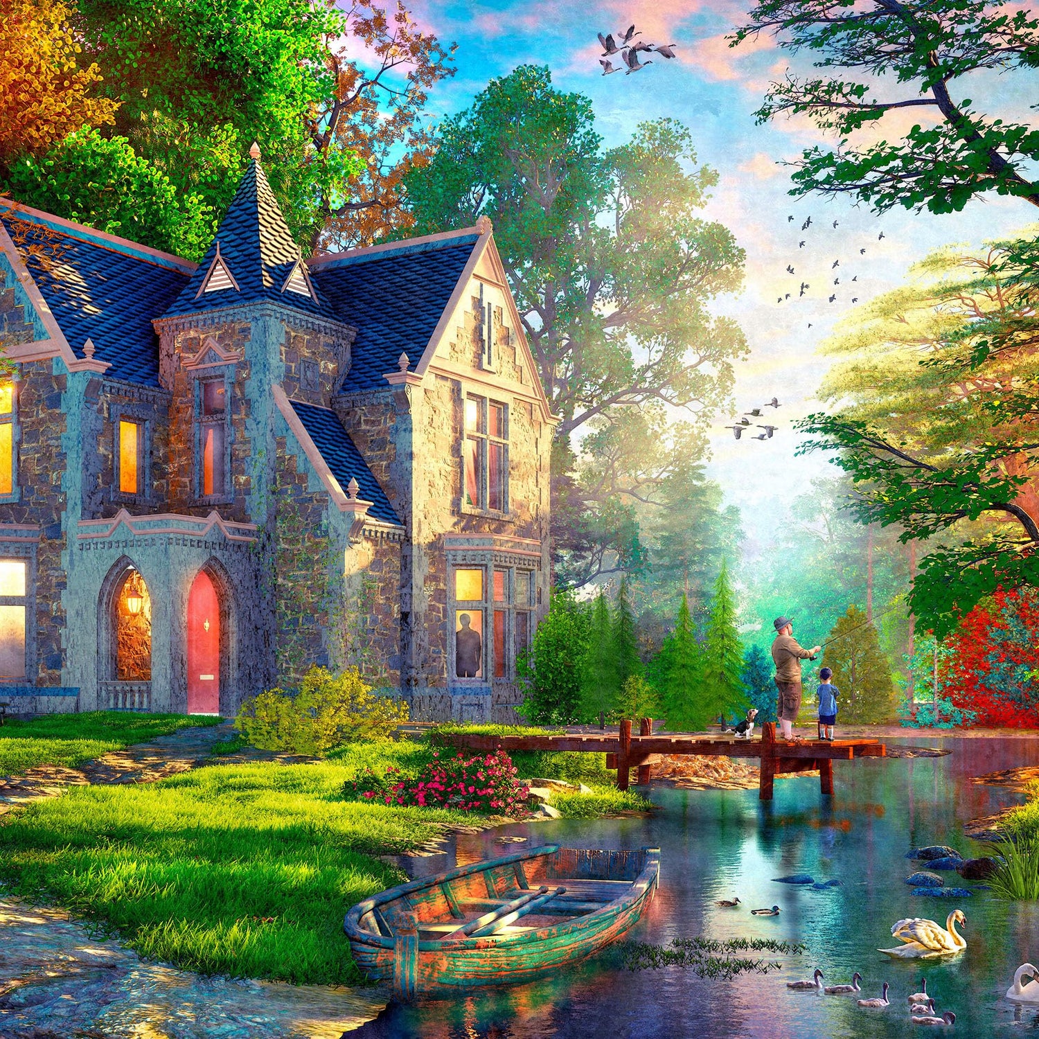 Ceaco - Gothic Fishing Lodge - 1000 Larger Sized Piece Jigsaw Puzzle