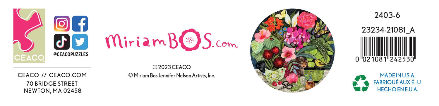Details: Welcome to Ceaco! We are so grateful that you have found your “fit” here. Since our start in 1987 we have remained true to our mission: to create high quality, innovative and challenging jigsaw puzzles and to provide hours of family fun. We pride ourselves on developing and maintaining long standing relationships with some of the finest artists of our time. Our talented team of designers and marketing professionals are always searching the world over for developing trends, emerging artwork, and new technologies involving printing, die cutting, and unique puzzle materials. Our purpose is clear: to continue to be in the forefront of our industry and create a product that combines family entertainment with a distinctive aesthetic. Count on Ceaco for the most creative, exciting, and colorful products ever! Thanks and happy puzzling!
