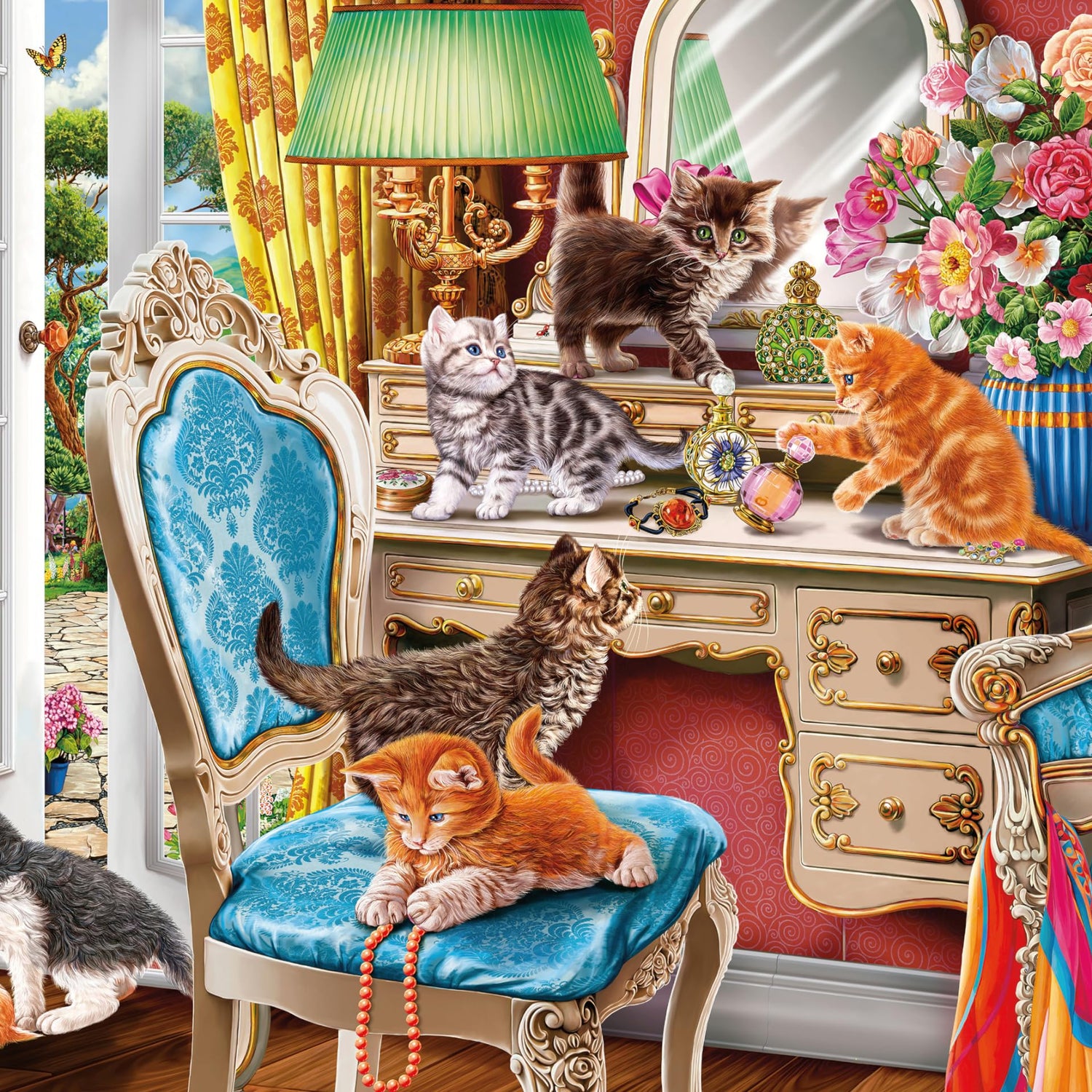 Ceaco - Paws Gone Wild - Kittens in The Bedroom - 500 Piece Jigsaw Puzzle