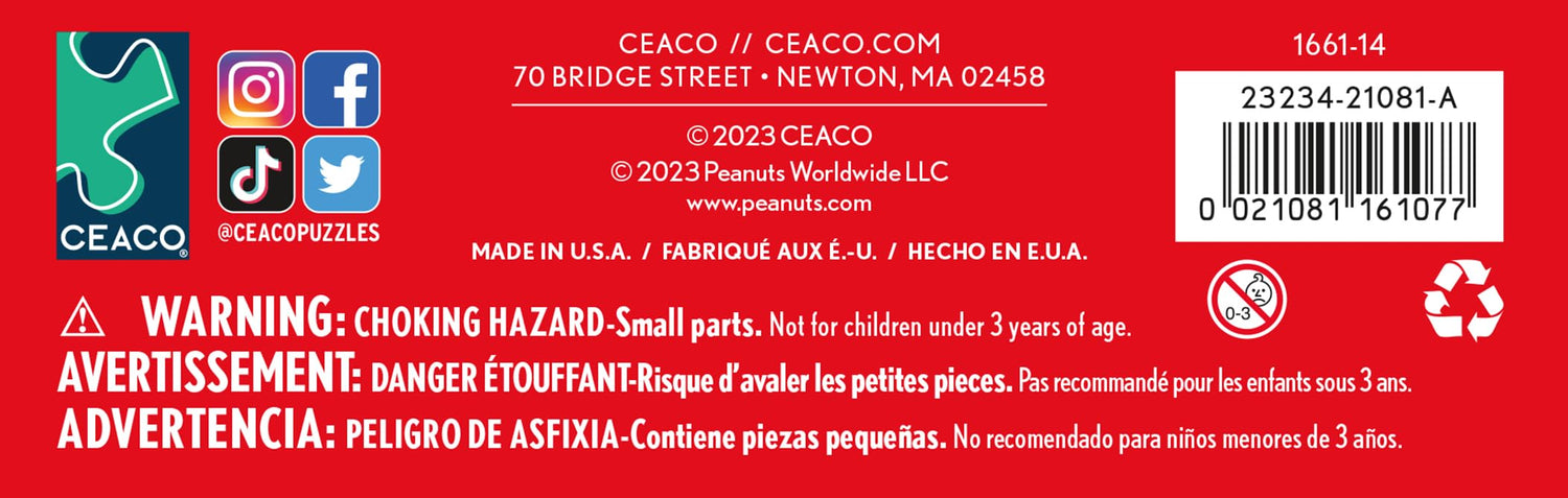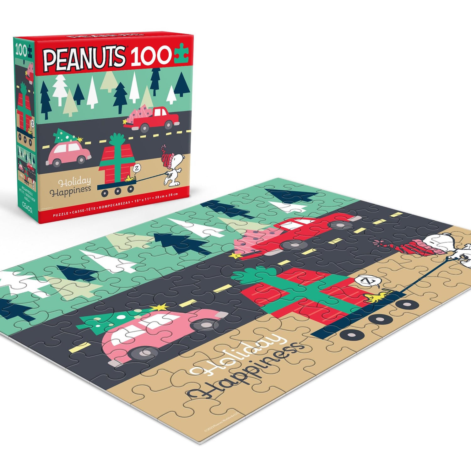 - Contains a 100 piece jigsaw puzzle from the Peanuts Christmas collection.