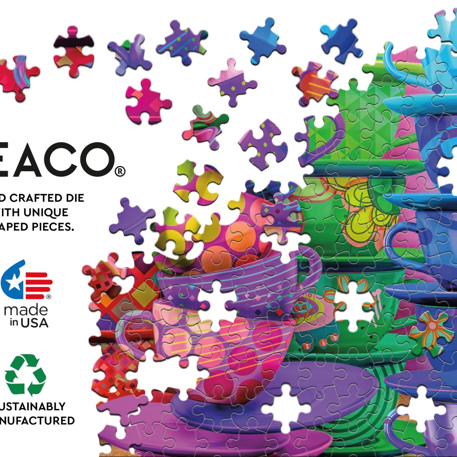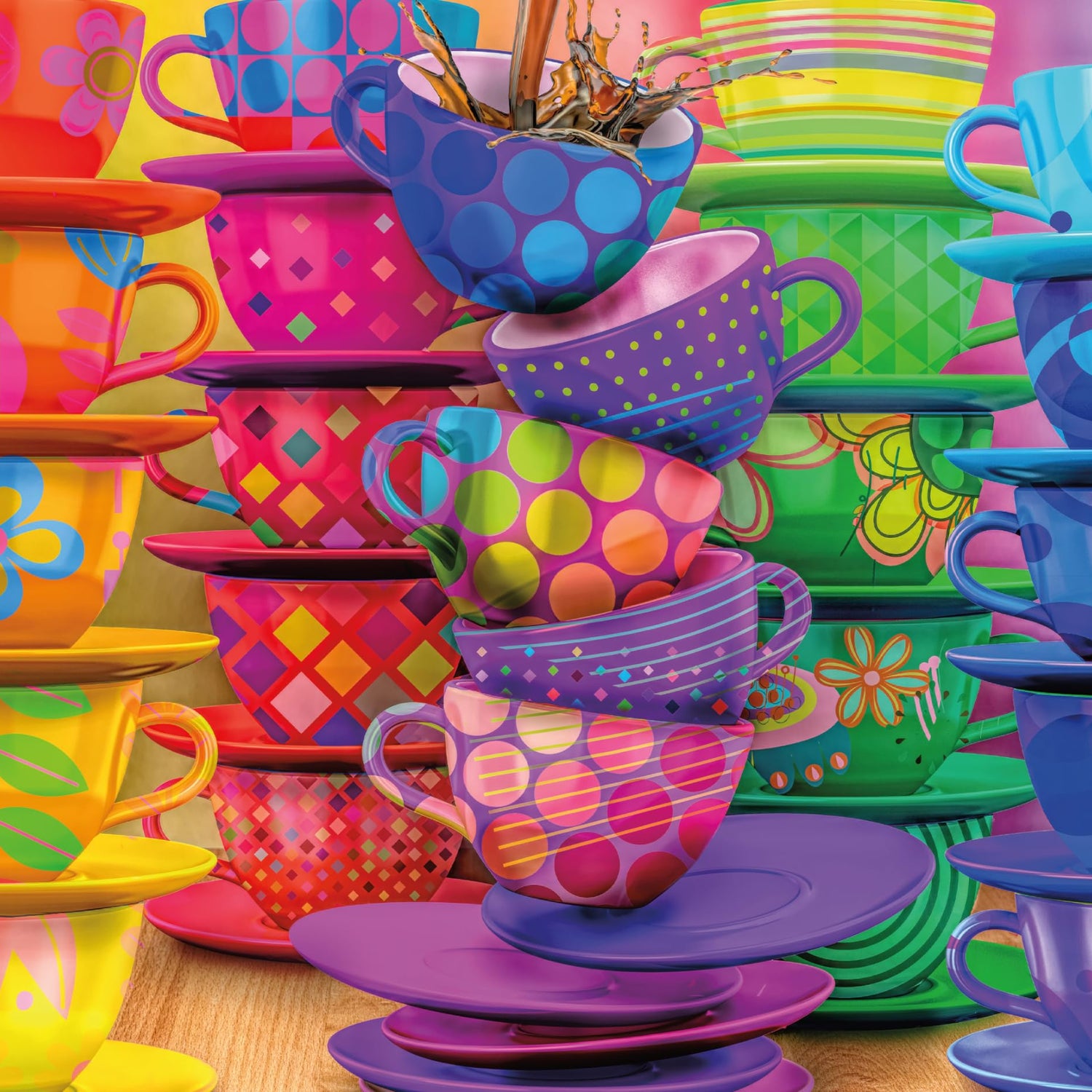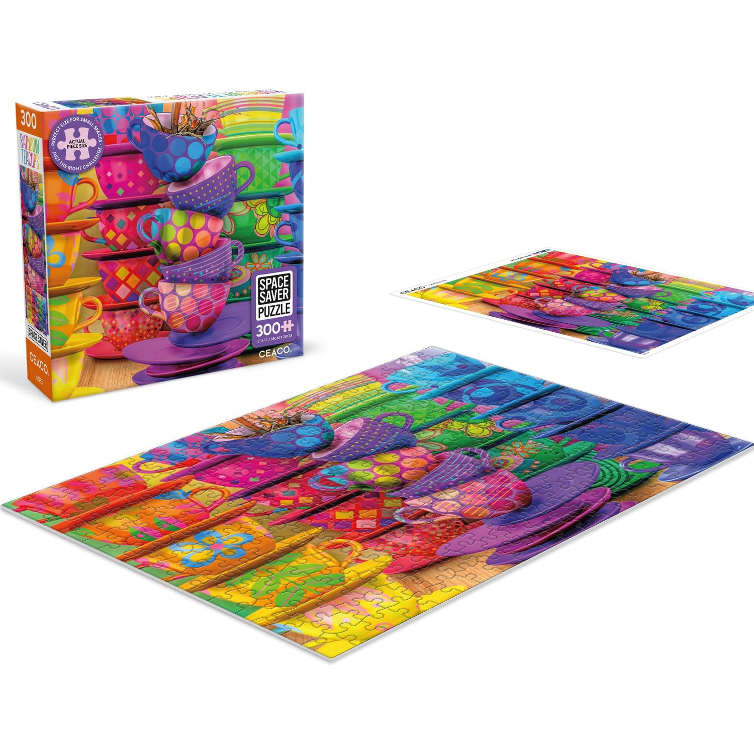Ceaco – Rainbow Teacups - 300 Piece Jigsaw Space Saver Puzzle – Puzzles for Smaller Spaces and Surfaces