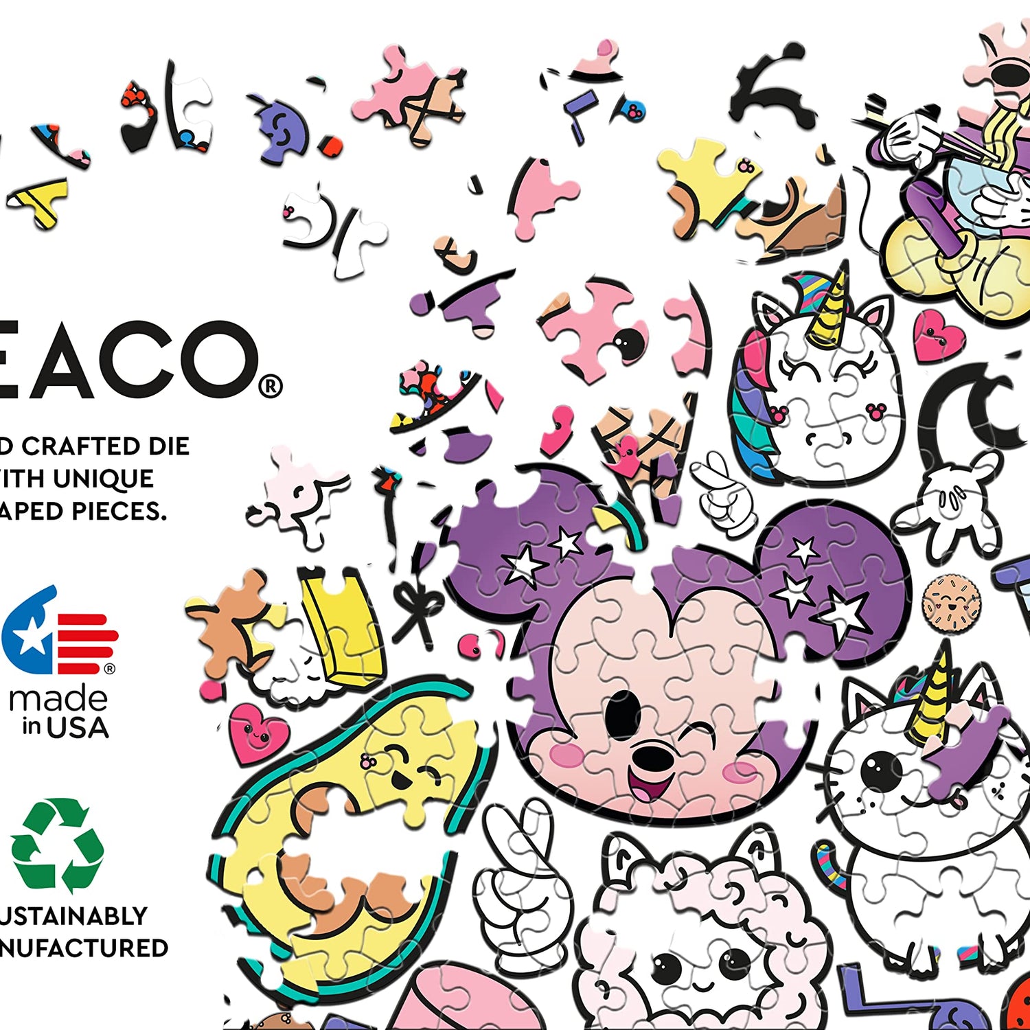 Details: Welcome to Ceaco! We are so grateful that you have found your “fit” here. Since our start in 1987 we have remained true to our mission: to create high quality, innovative and challenging jigsaw puzzles and to provide hours of family fun. We pride ourselves on developing and maintaining long standing relationships with some of the finest artists of our time. Our talented team of designers and marketing professionals are always searching the world over for developing trends, emerging artwork, and new technologies involving printing, die cutting, and unique puzzle materials. Our purpose is clear: to continue to be in the forefront of our industry and create a product that combines family entertainment with a distinctive aesthetic. Count on Ceaco for the most creative, exciting, and colorful products ever! Thanks and happy puzzling!