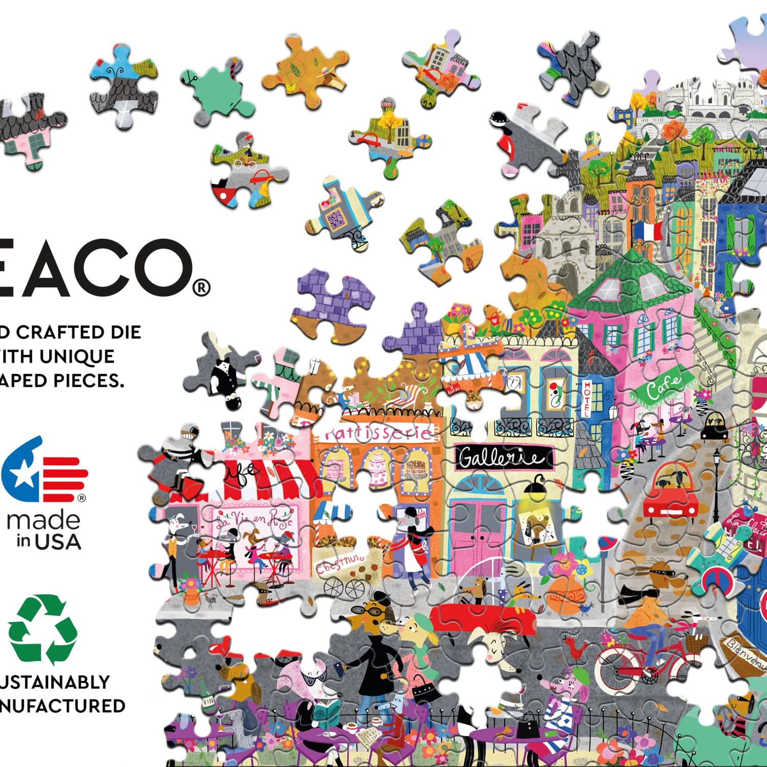 Details: Welcome to Ceaco! We are so grateful that you have found your “fit” here. Since our start in 1987 we have remained true to our mission: to create high quality, innovative and challenging jigsaw puzzles and to provide hours of family fun. We pride ourselves on developing and maintaining long standing relationships with some of the finest artists of our time. Our talented team of designers and marketing professionals are always searching the world over for developing trends, emerging artwork, and new technologies involving printing, die cutting, and unique puzzle materials. Our purpose is clear: to continue to be in the forefront of our industry and create a product that combines family entertainment with a distinctive aesthetic. Count on Ceaco for the most creative, exciting, and colorful products ever! Thanks and happy puzzling!