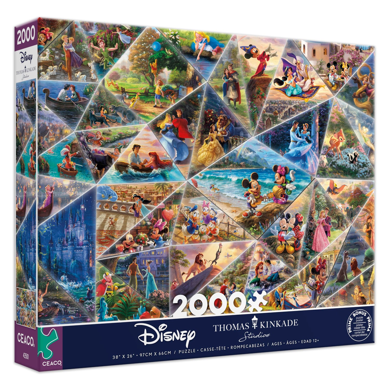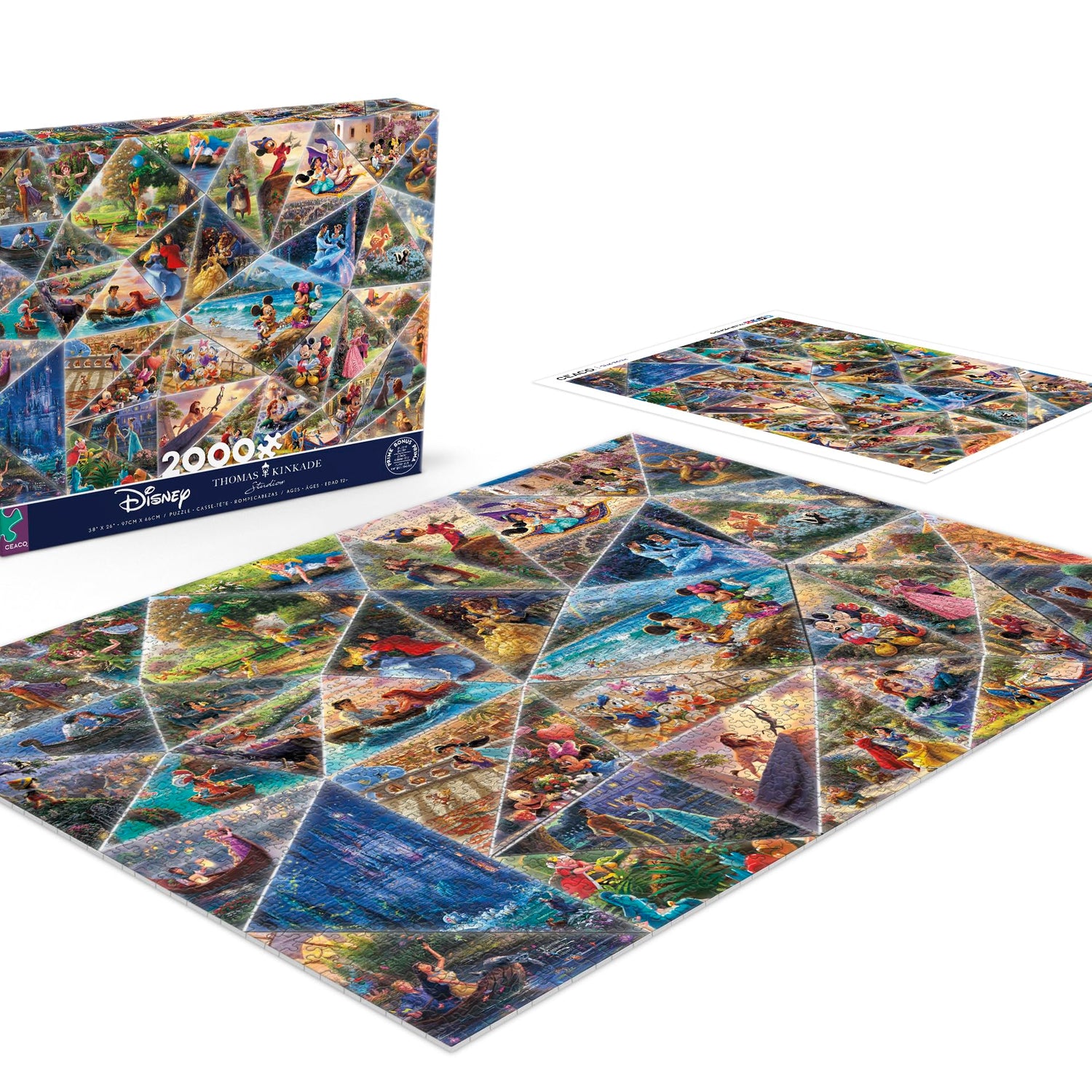 - Contains a 2000 piece Disney jigsaw puzzle by Thomas Kinkade.