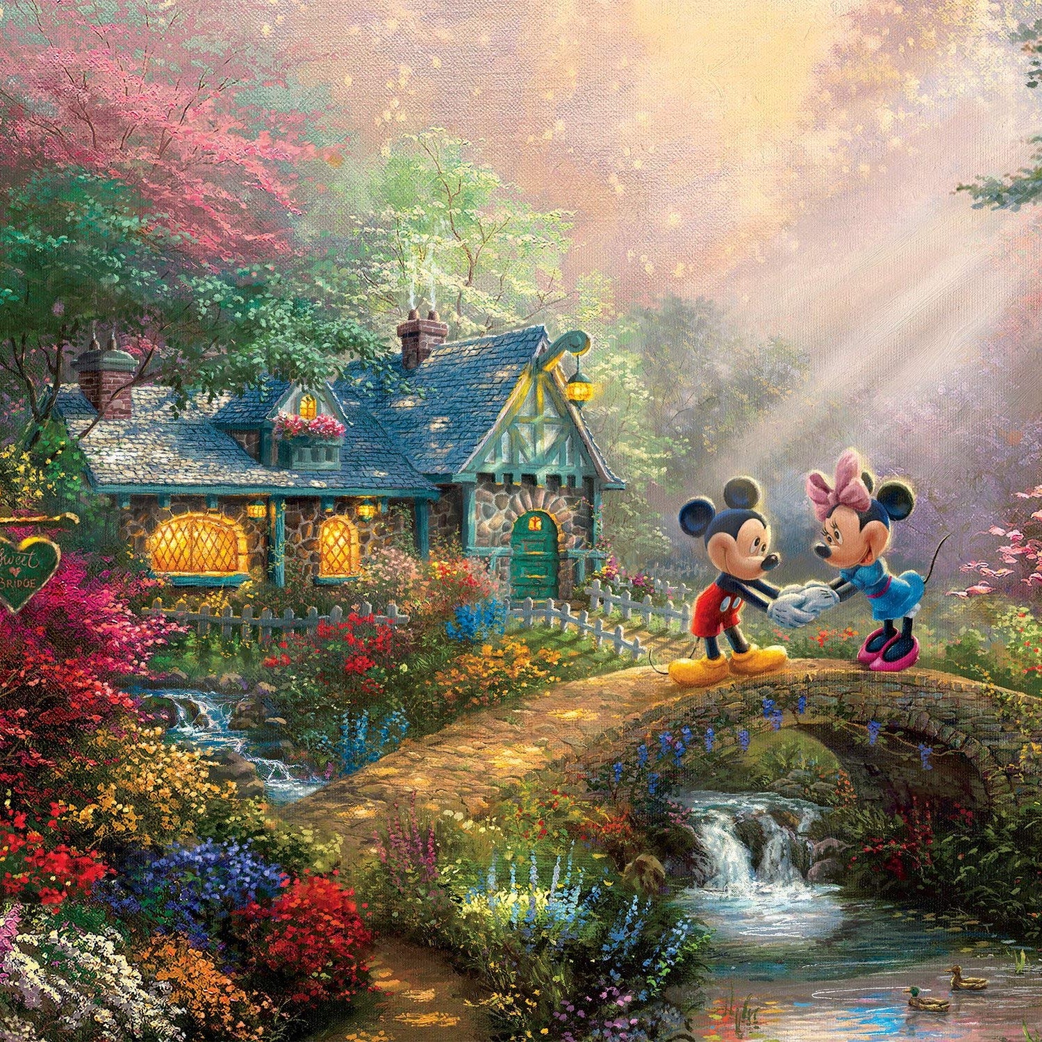 Ceaco - Thomas Kinkade - Disney Dreams Collection - Mickey and Minnie Sweetheart Bridge - 750 Piece Jigsaw Puzzle