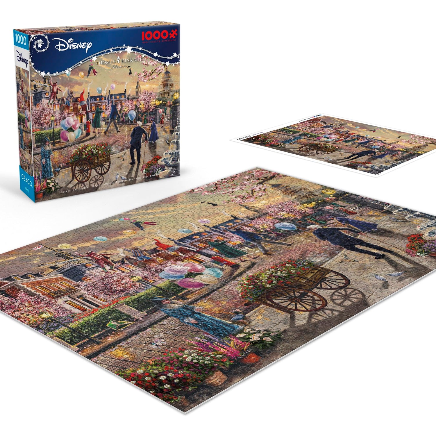 - Contains a 1000 piece Disney jigsaw puzzle by Thomas Kinkade.