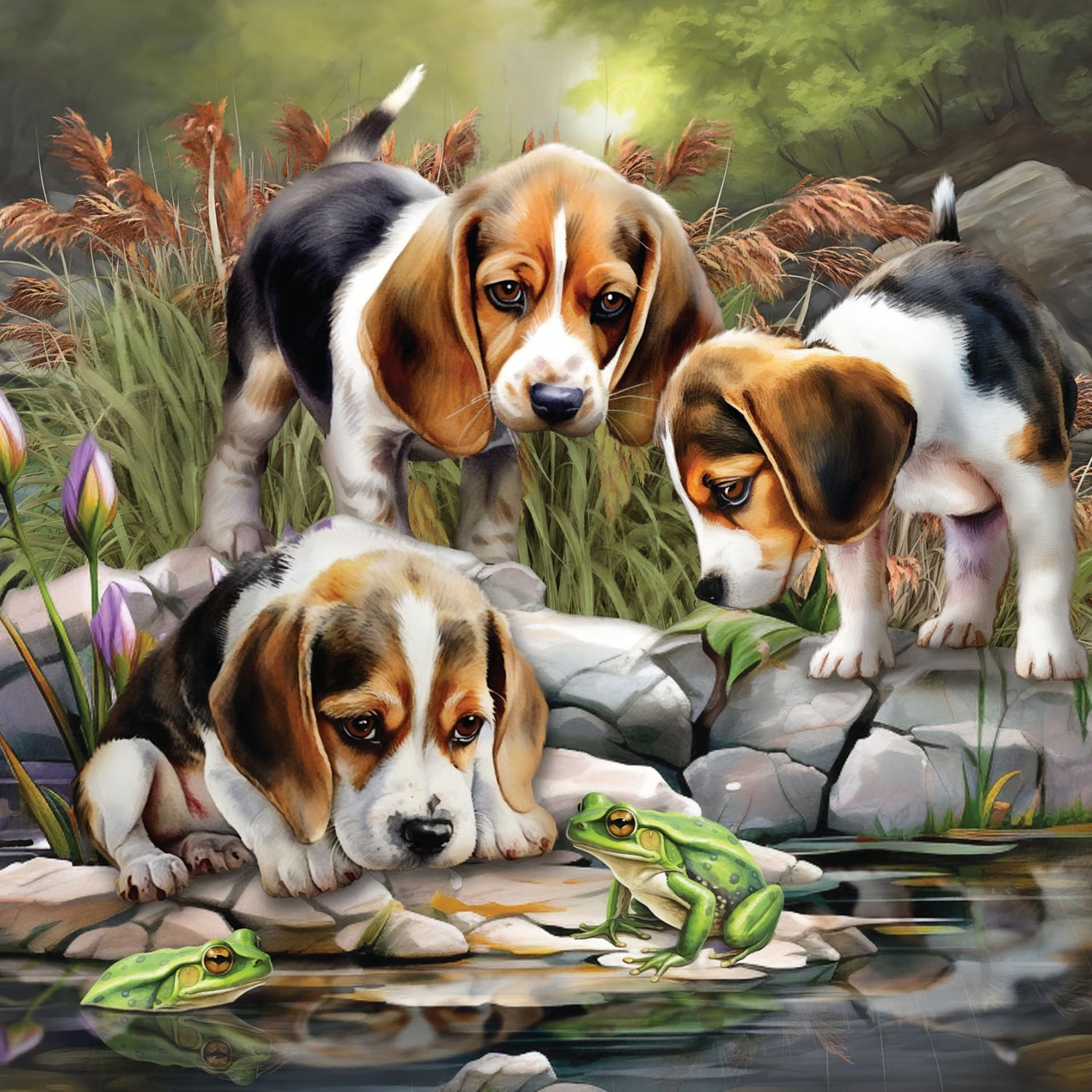 Ceaco - Tom Wood - Baby Beagle Brothers - 300 Oversized Piece Jigsaw Puzzle