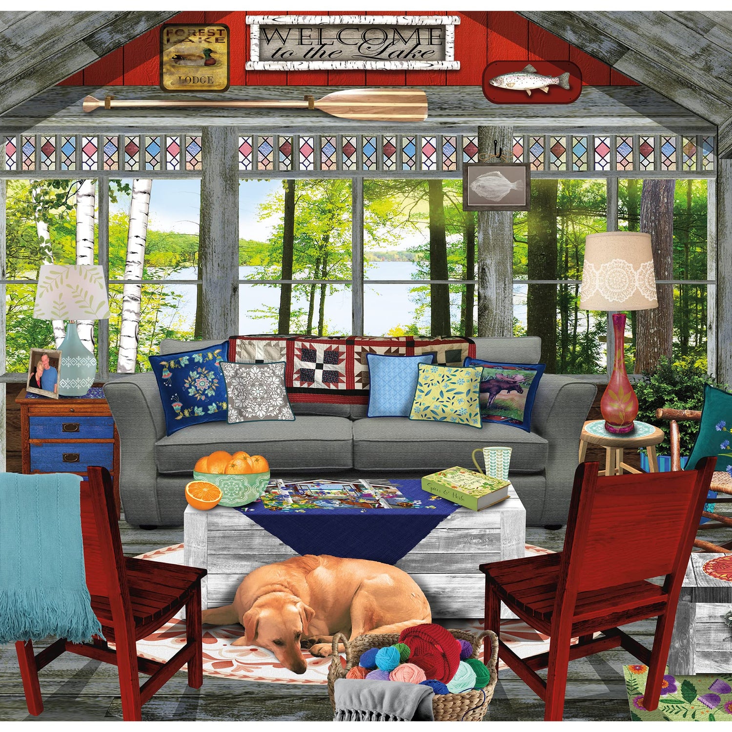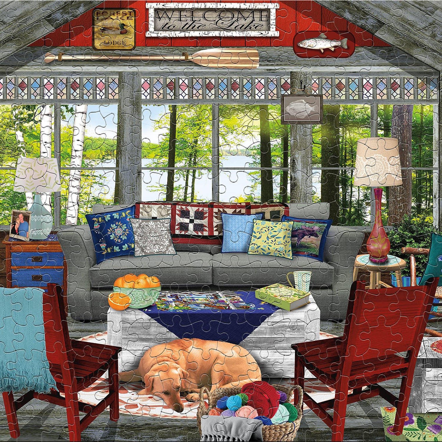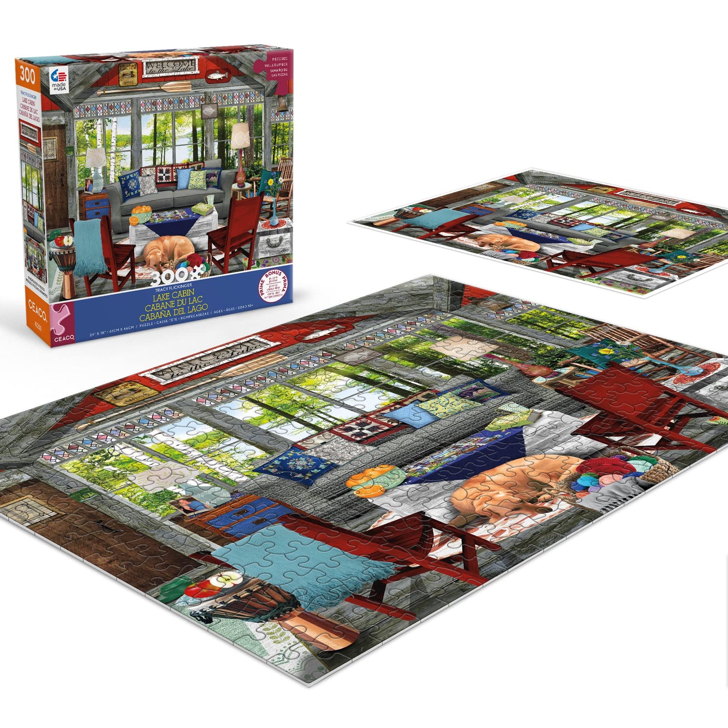 Ceaco - Tracy Flickinger - Lake Cabin - Oversized 300 Piece Jigsaw Puzzle, 24 x 18