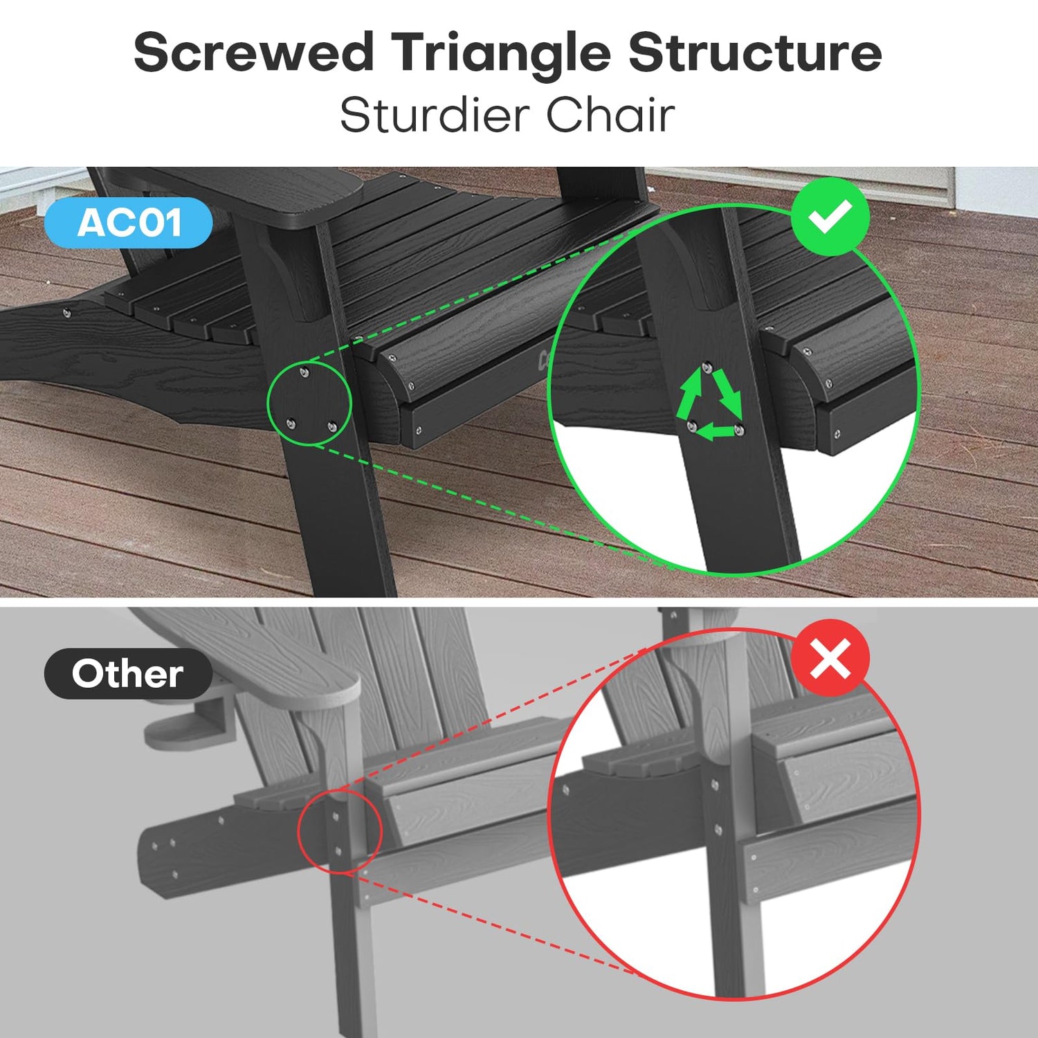 - OVERSIZED: Bigger size, bigger seat. It is wider and larger than 98% of adirondack chairs and can carry up to 385LB. Compared to other adirondack chairs, AC01 is the better choice in a oversized adirondack chair