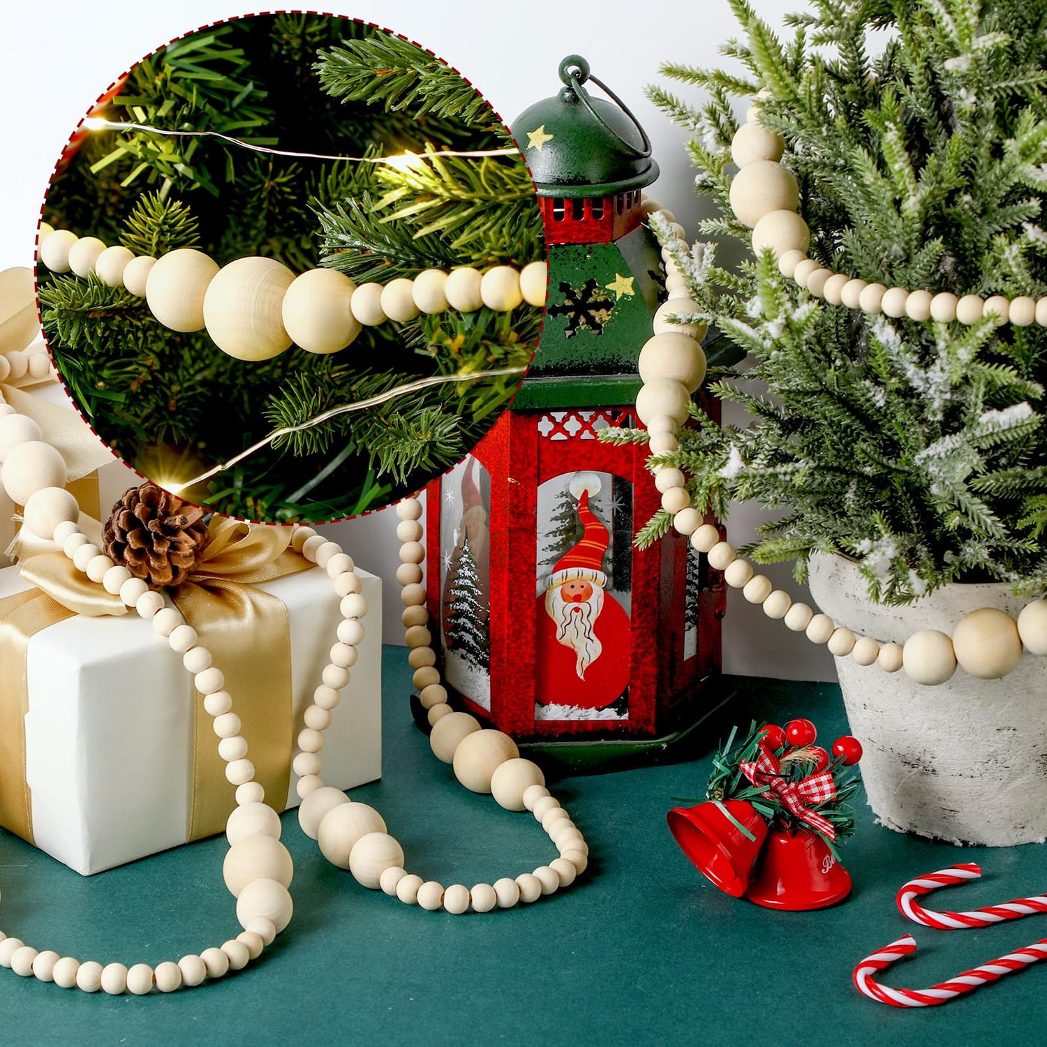Ceenna 2 Pcs 18 ft Christmas Wood Bead Garland without Tassels 9ft Wooden Beads Garland Rustic Farmhouse Beads Boho Beaded Garland Decor Wooden Bead Garland Decor for Home Boho Decor (Wood)