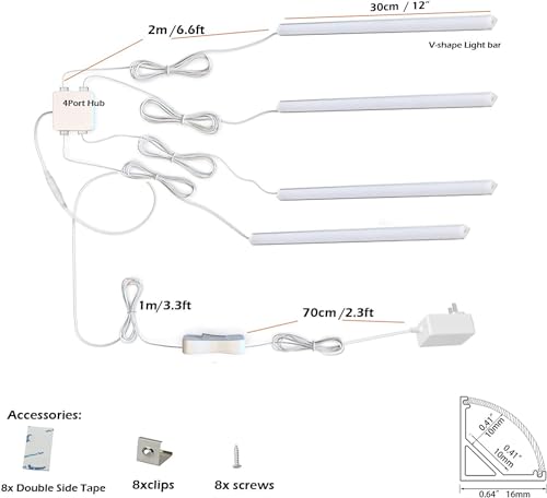 - V Shape Design: Designed with V shape and an elegant aluminum extrusion profile, our light bars are perfect for corner installation, offering a low-profile and stylish lighting solution. Easily create a stylish atmosphere in your kitchen cabinet, showcase, closet, or shelf.
