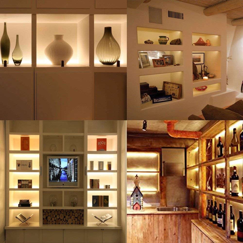 - EASY INSTALL DIY : With a small sticky back and two places for screws (included). uses include: Under Cabinet Lighting, Bookcase, Cove, Shelf, Closet lighting, Kitchen Remodel, Ambient lighting, Art work lighting, Gun Safe lighting, Home Theater Lighting