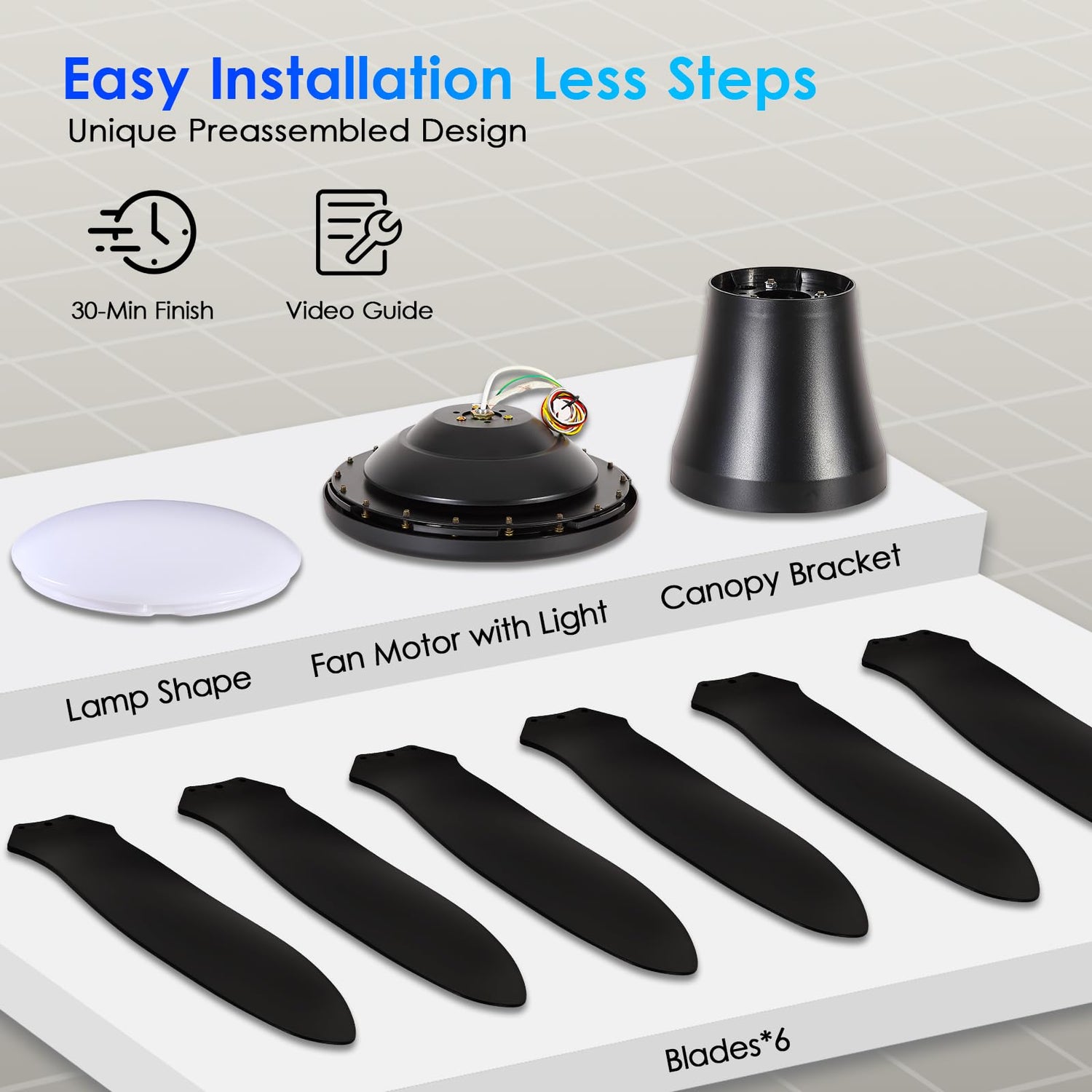 - Ceiling Fans with Remote APP Control Convenience: Control with the APP or the remote controller, to adjust the fan 6 wind speeds and 2 hour timing off (only fan), the light 3 color temperatures, dimming and night light mode. Included a wall mount to hold the remote on the wall for easy access. For smart App control , simply scan the QR code on the manual to download the app, and you can control the smart fan light with your phone anytime, anywhere