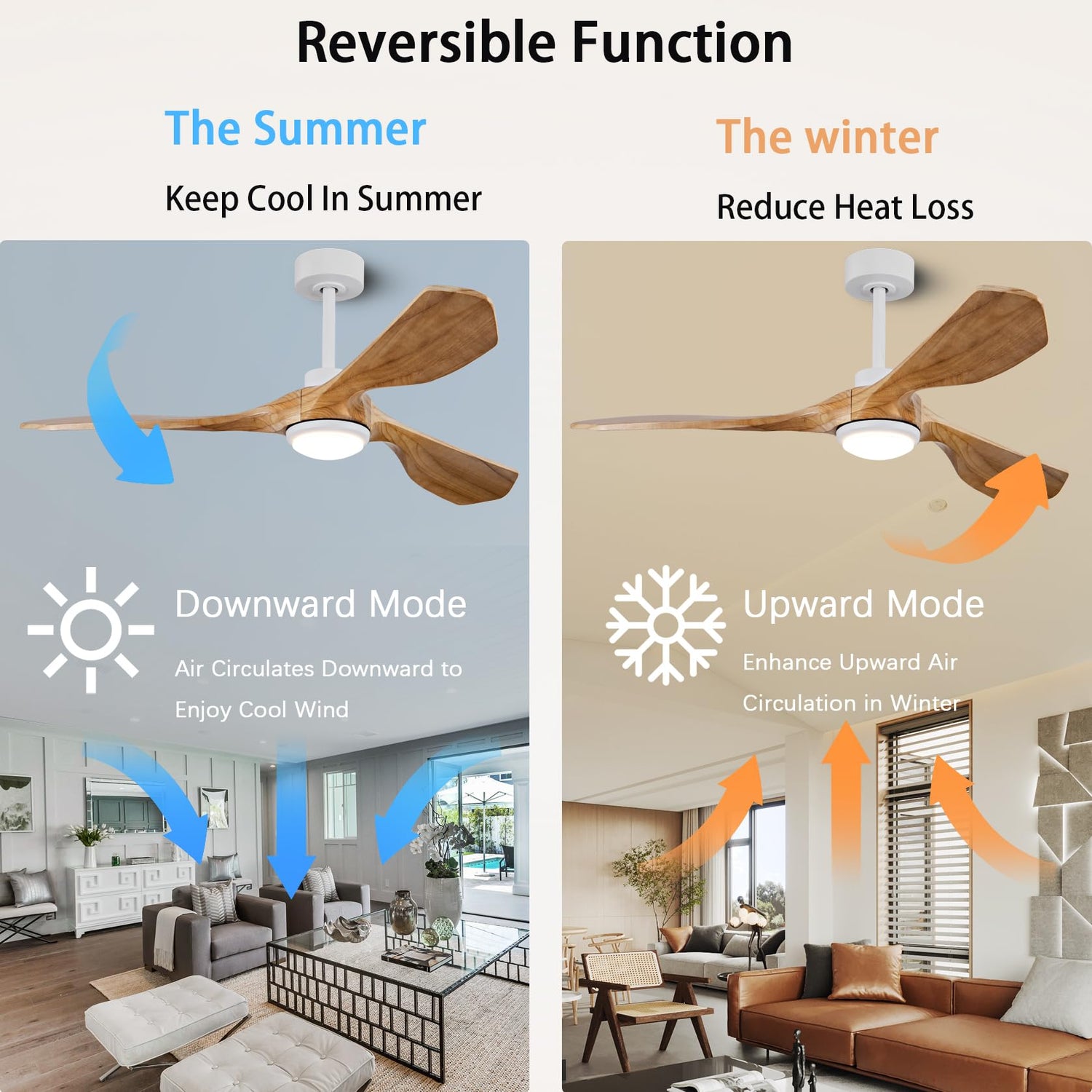 Ceiling Fans with Lights and Remote,52 Inch Unique Wood Ceiling Fan with Noiseless Reversible DC Motor,3 Blades,3 Downrods, for Farmhouse,Patio Living Room, Bedroom, Office,Indoor Outdoor(Raw wood)