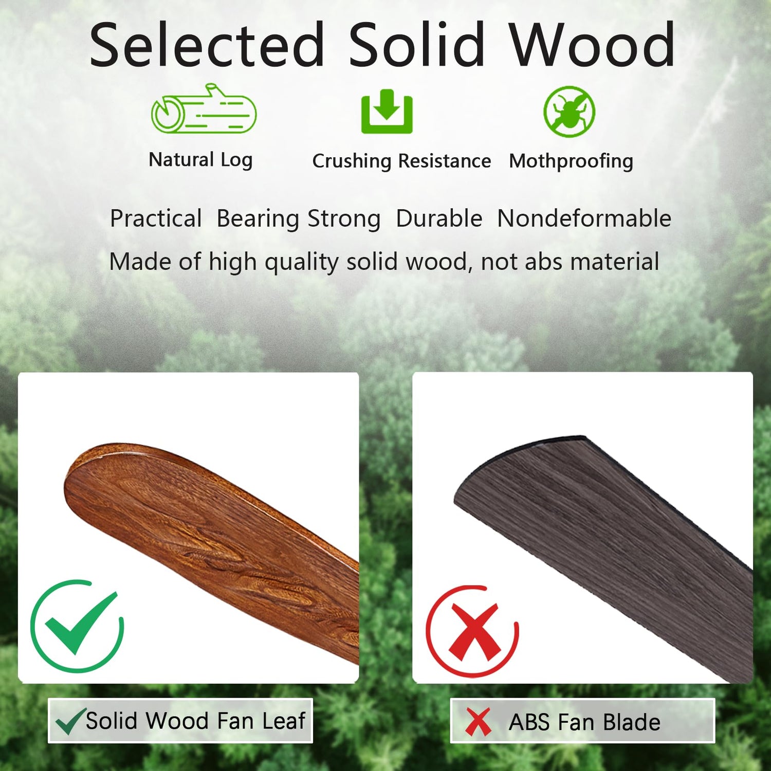 - ◆ Wood Fan Blade Ceiling Fan: The ducrew 52” ceiling fan has three natural tung walnut-colored wood fan blades that are finely carved. It's available with a choice of 5-inch, 10-inch and 14-inch extensions, allowing you to choose the optimal height for your space, with an overall height from ceiling to base of 12 inches, 17 inches or 21 inches. It can also be installed at a 15-degree tilt.